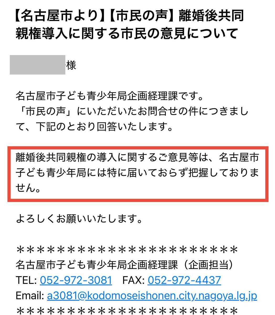 少なくとも、名古屋市には共同親権に対して市民の意見はないみたいですよ。 #共同親権は子どもを守る #DV被害者の本当の敵 pic.x.com/Jgysonpsbs x.com/aiben_info/sta…