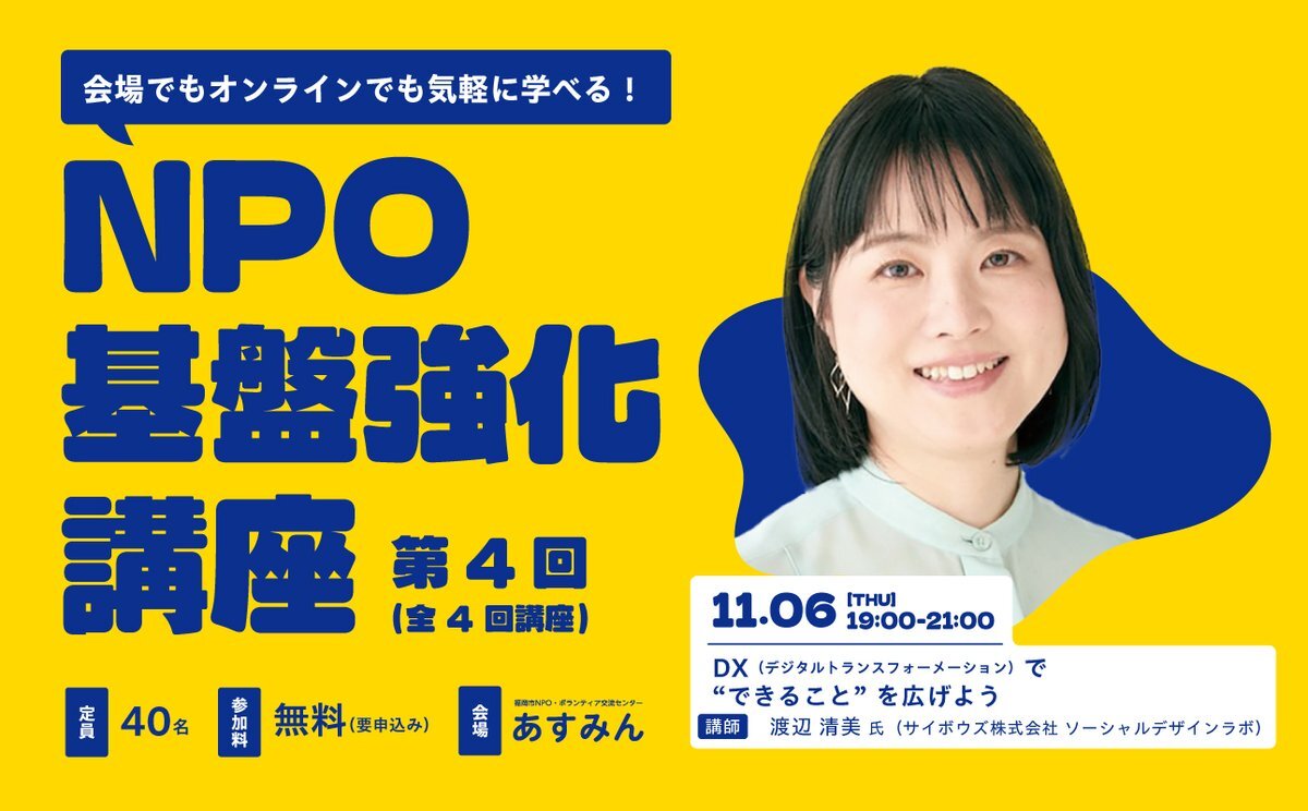 \NPO基盤強化講座!今週が最終回!💪/ 11/6(木)19:00~21:00「DXで“できること”を広げよう」 クラウドサービスを使用した業務効率化やチームワーク向上など、#DX(デジタルトランスフォーメーション)の活用について学びます! 詳しくは➡️fnvc.jp/event/detail/2… #NPO #福岡 #サイボウズ #デザイン pic.x.com/pDOIJaawvy