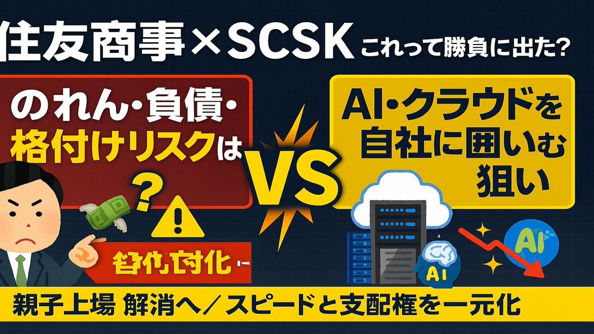 住友商事、SCSKをフル統合へ📣 5,700円TOB(プレミアム31〜34%) 取得総額8,820億円💴 完全子会社化→上場廃止ルート AI/クラウド/データを内製化する代わりに「のれん・負債・格付け」という重い宿題も背負う…📉 📺 youtu.be/sLokSu5YXVM #住友商事 #SCSK #TOB #AI #DX #親子上場解消 #投資家 pic.x.com/20xQ9NGVm5
