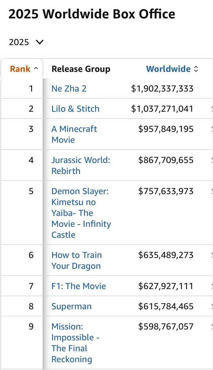 「鬼滅の刃無限城編」の世界興行収入、なぜ6億→5.4億ドルに落ちた?と思ってたら、今度は7.6億ドルでスーパーマン、F1、ヒックとドラゴンをゴボウ抜きの5位! ジュラ、マイン抜きも夢じゃないかも? 凄ぇ... #DemonSlayer #DemonSlayerInfinityCastle #鬼滅の刃 #鬼滅の刃無限城編