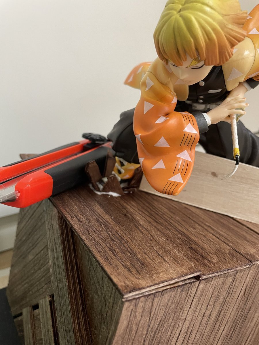 材料は全て100均✨ DAISO様様🪙😘 雷はマドラースプーンを焼いて曲げて 家は板にオイル塗って貼り貼り✌️ お気に入りはエフェクトと 足の踏ん張り🦵💜 #DemonSlayer #鬼滅の刃 #我妻善逸 pic.x.com/RFljtWgZbP