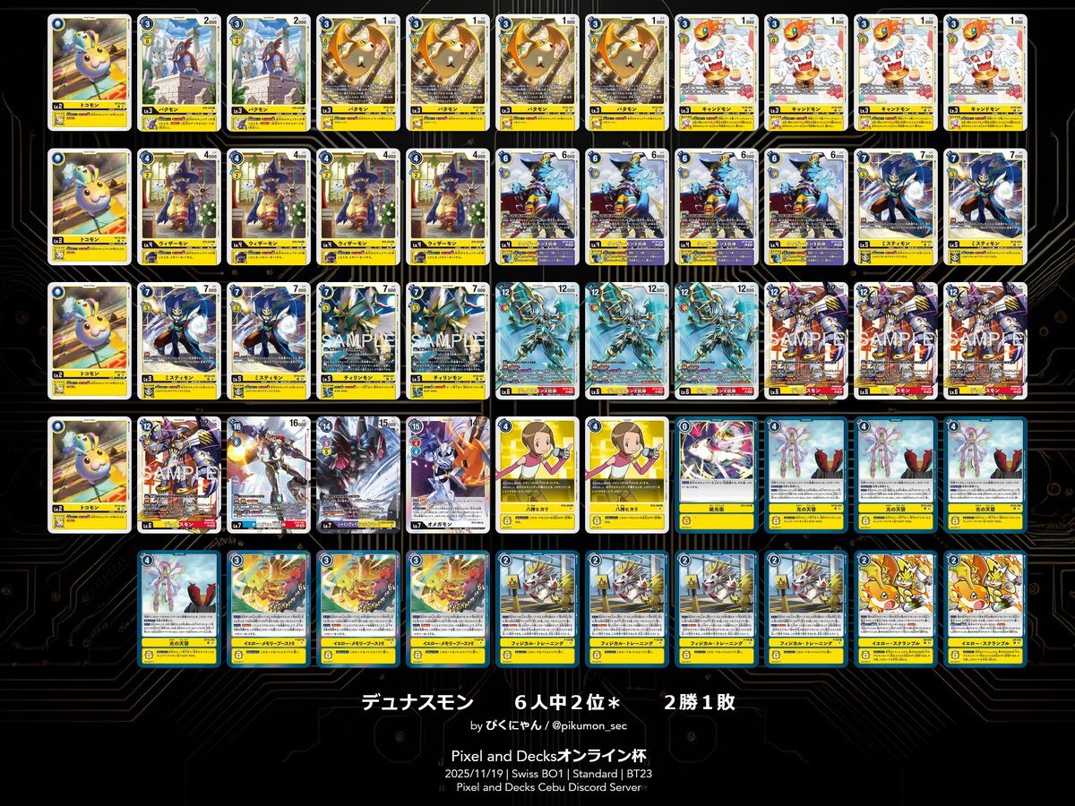 @pixelsanddecks Blitz Wednesday 2025年11月19日 スイスBT23 パペットコントロール 〇 光十闘士 〇 LFNC ✕ 2勝1敗 6人中2位 2人同位 #デジモン #デジモンカードゲーム #デジカ #Digimon #マサカのデジカ #DigimonTCG #デジモンカード #DigimonCardGame pic.x.com/I5bdkPA7ol