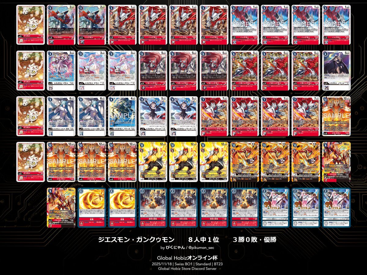 Global Hobizオンライン杯 2025年11月18日 スイスBT23 ダークマスターズ 〇 ホウオウ 〇 フーディエ 〇 3勝0敗 8人1中 ー 優勝! #デジモン #デジモンカードゲーム #デジカ #Digimon #マサカのデジカ #DigimonTCG #デジモンカード #DigimonCardGame #優勝 pic.x.com/X3Y0Iz0F8P