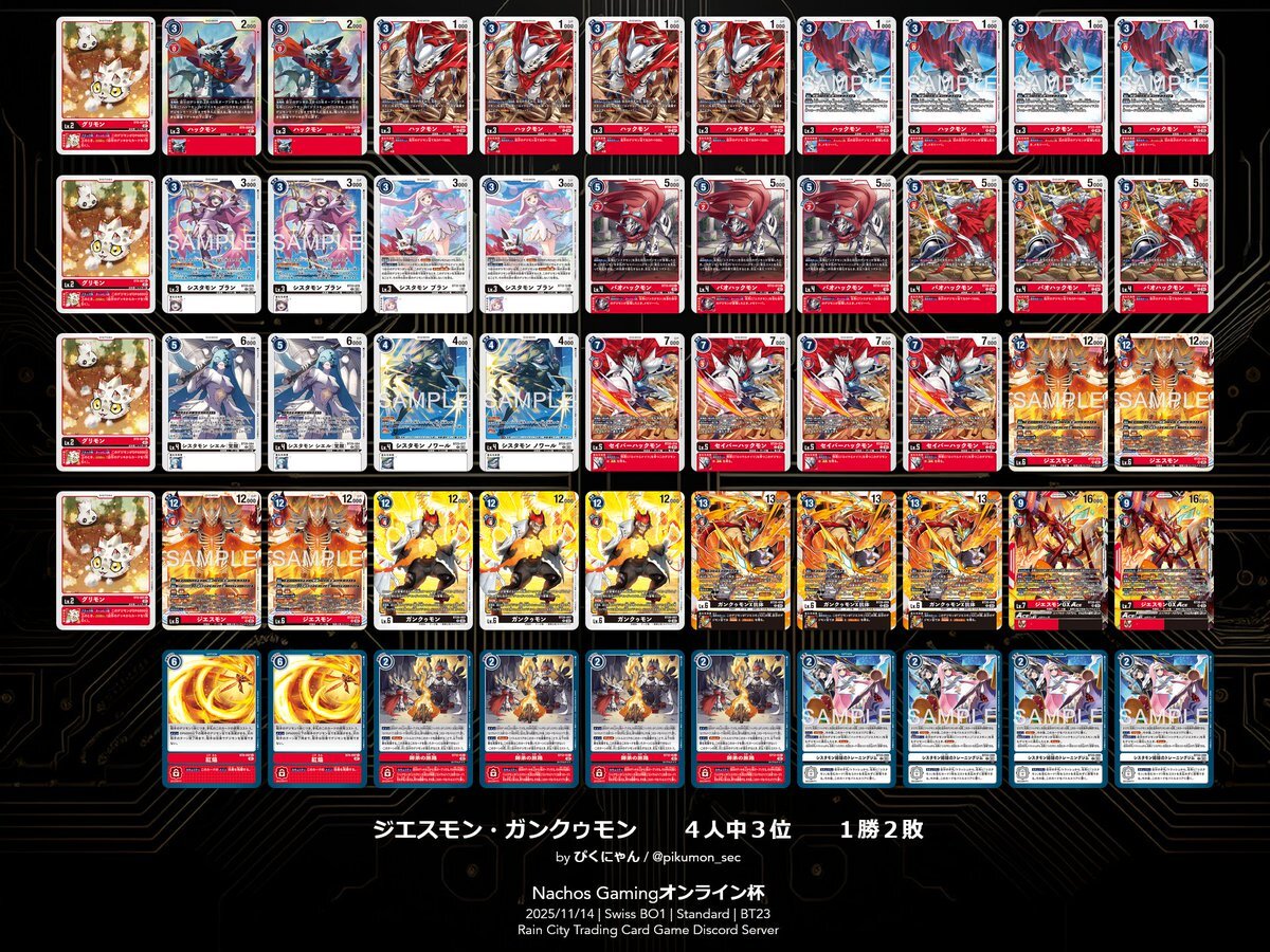 Nachos Gamingオンライン杯 2025年11月14日 RR BT23 インペリアルドラV 〇 オメガ ✕ Alter-S ✕ 1勝2敗 4人中3位 #デジモン #デジモンカードゲーム #デジカ #Digimon #マサカのデジカ #DigimonTCG #デジモンカード #DigimonCardGame pic.x.com/kffljKGEKH