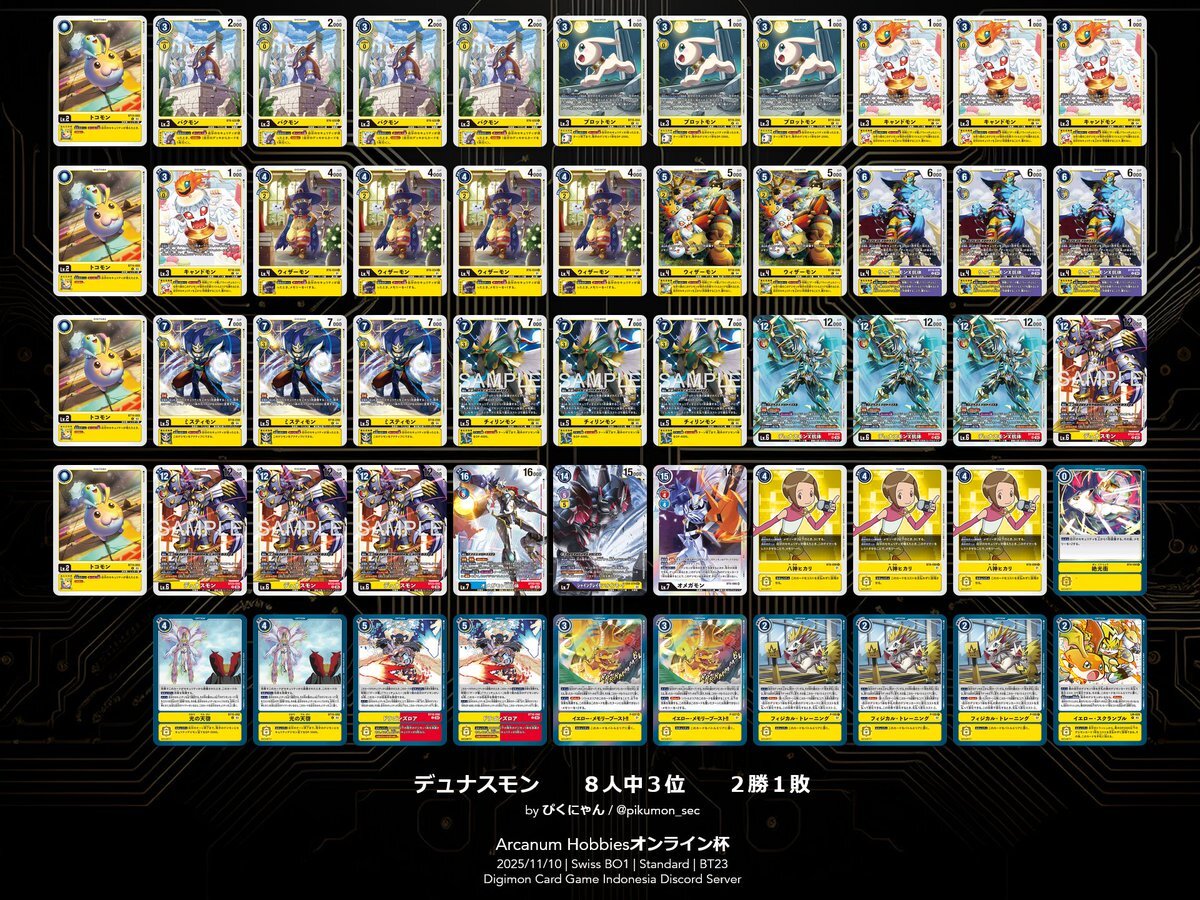 Arcanum Hobbiesオンライン杯 2025年11月10日 スイスBO1 BT23 デューク ✕ フーディエ 〇 Alter-S 〇 2勝1敗 8人中3位 #デジモン #デジモンカードゲーム #デジカ #Digimon #マサカのデジカ #DigimonTCG #デジモンカード #DigimonCardGame pic.x.com/h0yhlsmqDl