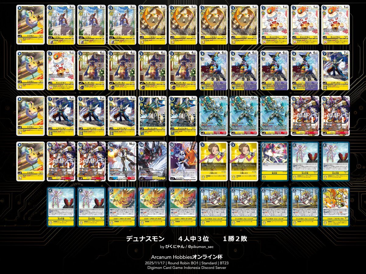 Arcanum Hobbiesオンライン杯 2025年11月17日 RRBT23 インペリアルドラV 〇 オメガ ✕ ロイヤルナイツ ✕ 1勝2敗 4人中3位 #デジモン #デジモンカードゲーム #デジカ #Digimon #マサカのデジカ #DigimonTCG #デジモンカード #DigimonCardGame pic.x.com/nAuk2N3EMn