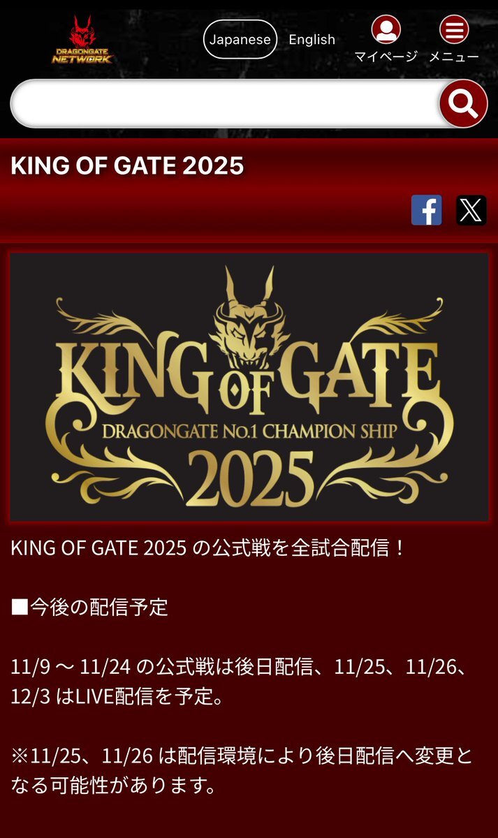 #KingOfGate2025 全戦配信🏆 専用ページがあり、とても見やすくなってます👀 会場で新規入会&お友達紹介キャンペーンも実施中なので、このチャンスに是非ご入会を🐲 #DRAGONGATE #DRAGONGATENETWORK pic.x.com/MldZ2C9Cci x.com/dragongate_pro…