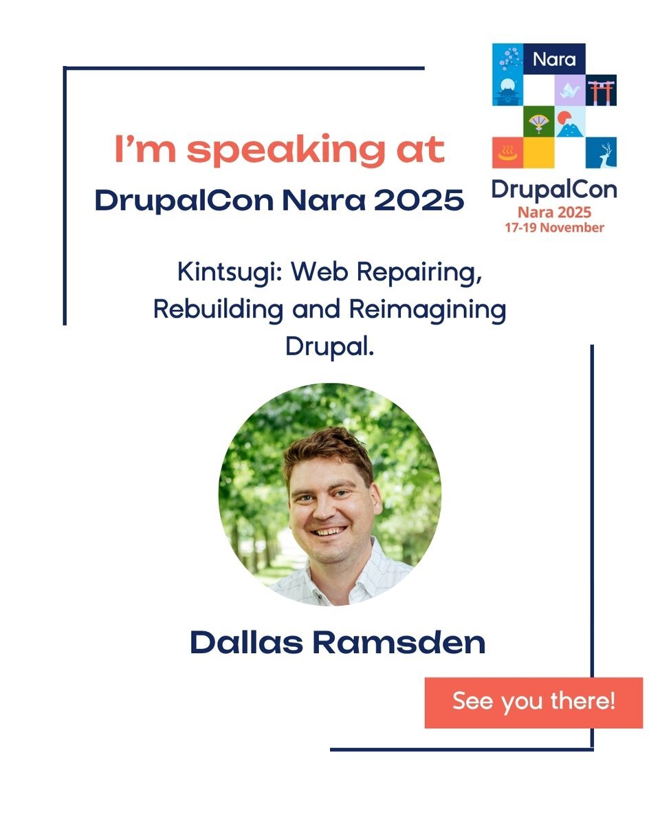 #DrupalCon Nara での Dallas Ramsden 氏によるセッション「Kintsugi:ウェブの修復・再構築・再創造と Drupal の新たな可能性」をお見逃しなく。 📍 会場:飛天 C/D | 🗓 11 月 17 日 | ⏰ 13:10 🗣️ 本セッションは英語で行われます。 👉🏻 登録はこちら: #DrupalConNara #DrupalConAsia #OpenSource pic.x.com/SLEyjf5yuH