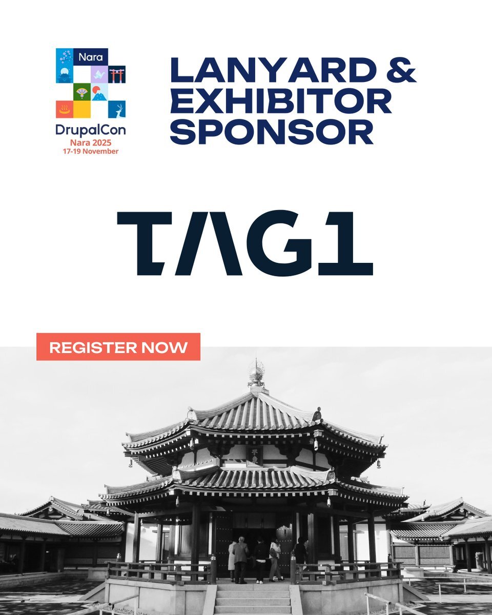 2025年のDrupalConNaraのランヤード+出展スポンサーである @tag1consulting に盛大な拍手を! Drupalの限界に挑戦することで知られるTag1 Consultingは、長年の貢献者であり、パフォーマンス最適化のプロです。 ブースでぜひお声がけください!🙌 #DrupalConAsia #DrupalThanks #OpenSource pic.x.com/pzV1Ez0f2X