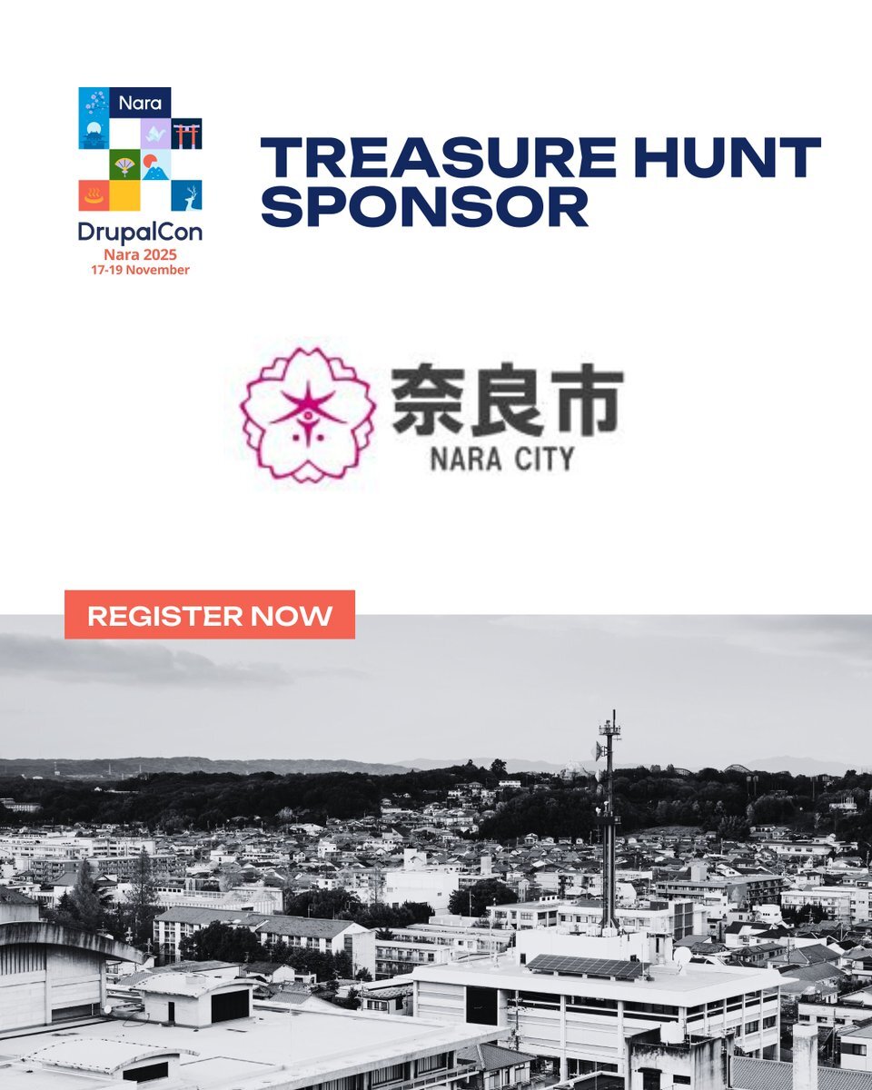#DrupalConNara 2025 の 宝探しスポンサー として、奈良市 をお迎えできることを嬉しく思います!🏯✨ 11月16日(日)12:30~15:30 🕞 奈良の街を巡りながら謎を解き、賞品をゲットしよう!🎯 👉 events.drupal.org/nara2025/treas… #DrupalConAsia #DrupalThanks #NaraCity #Sponsor pic.x.com/IMeI7QJ3O6