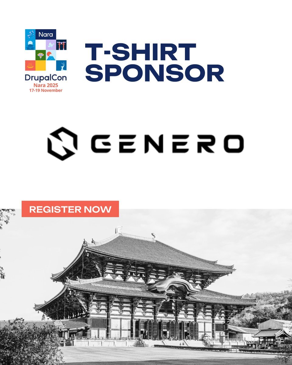#DrupalConNara 2025 の公式 T シャツスポンサーとして、@GeneroJP をお迎えできることを心からうれしく思います!👕 日本、そして世界の Drupal コミュニティへの温かいご支援に感謝します。💙 #DrupalConAsia #DrupalThanks #Genero #Sponsor pic.x.com/464LSC8NzN