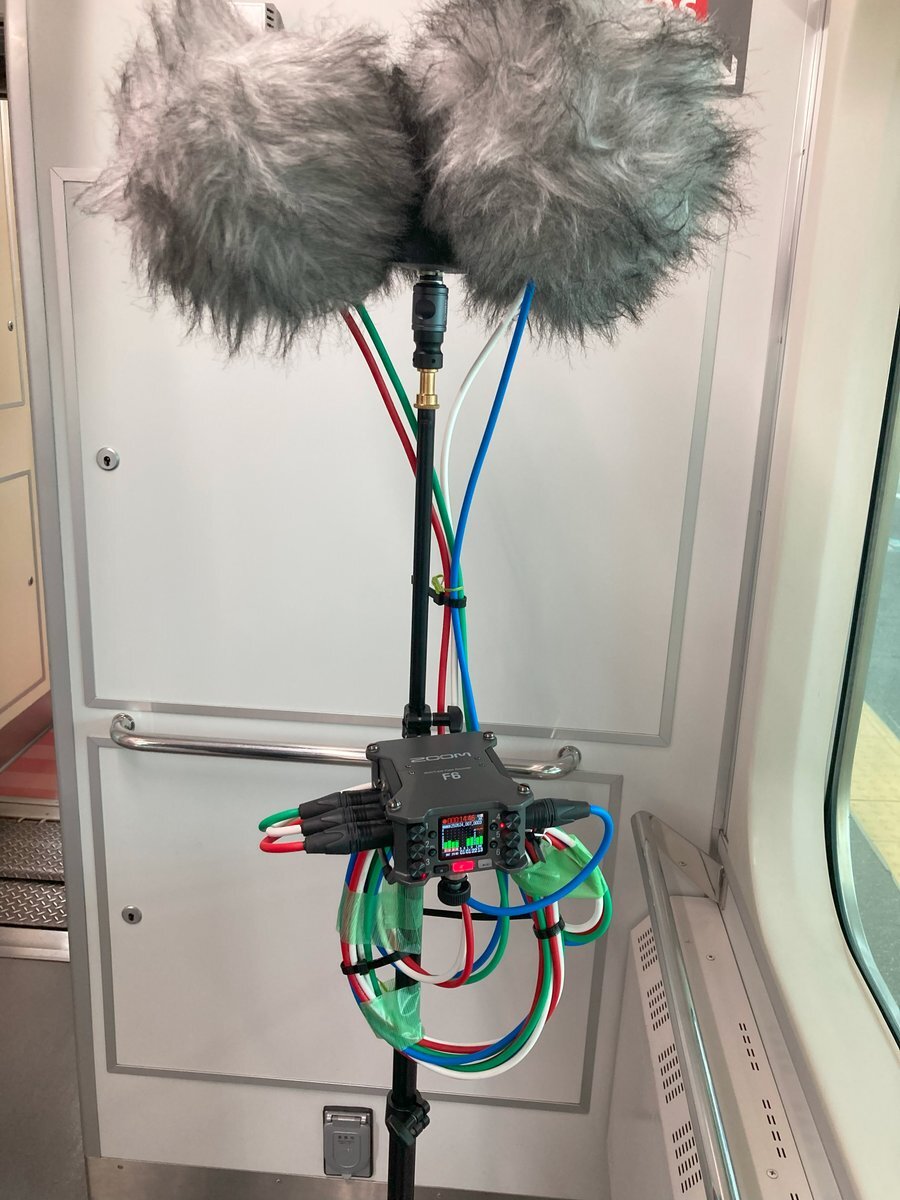 #E129系 録音専用車の風景。手ごろなマイクから、指向性ガンマイクを何本も組み合わせた"要塞"タイプまでよりみどり。この車両がそのままヨドバシカメラになりそうです。ただ、今回は #音鉄 企画にしては移動回数が多く、持ち主さんも中々辛かったかと思われます…😅 pic.x.com/LfX4XueJg1