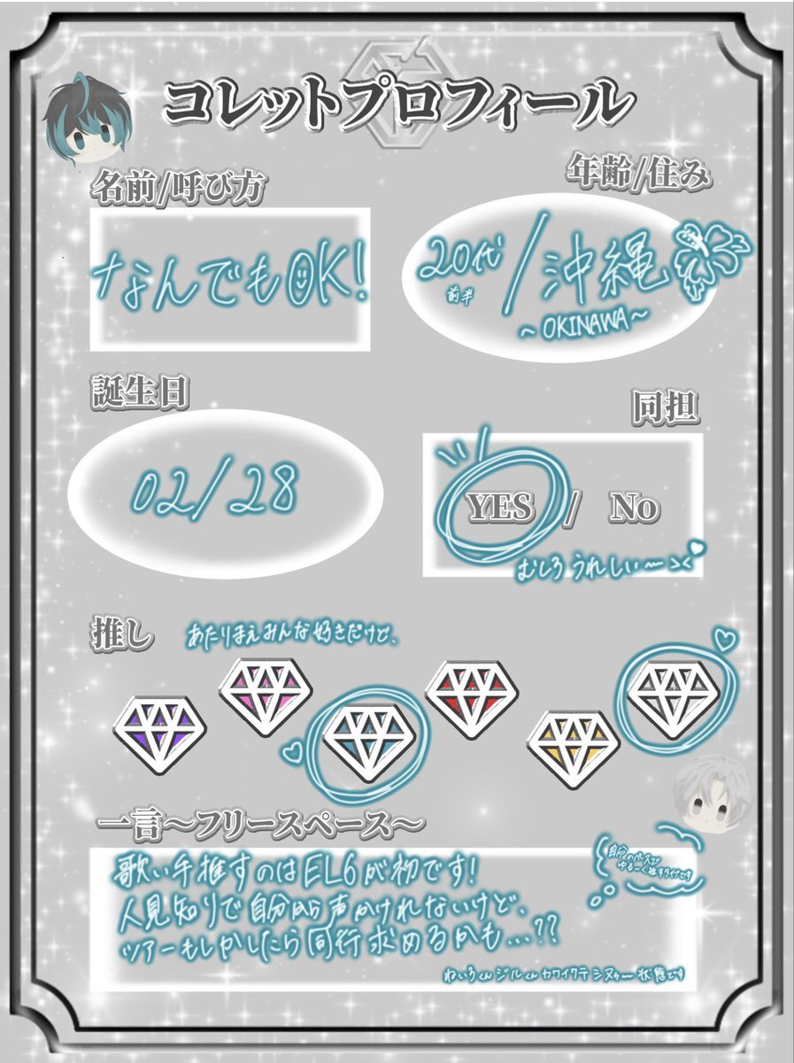 ライブツアーもしかしたら同行者募集するかもなので自己紹介しておきます(..) (全然当選してなかったらオチコム...) @0426_moemoe ちゃん お借りしました🙇‍♀️ #コレットさんと繋がりたい #EL6好きさんと繋がりたい #EL6好きな人と繋がりたい pic.x.com/DgAHuScTJa