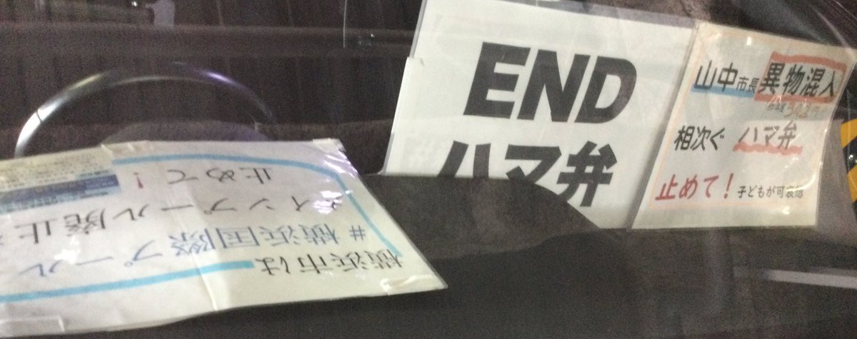 1日一回車に掲示 20251102 #横浜国際プールメインプール廃止するな#ENDハマ弁 🆕📣山中市長は異物混入相次ぐハマ弁止めて!(昨年度342件!)子どもが可哀想 #ダッシュボードプロテスト pic.x.com/7lRInBRcqK