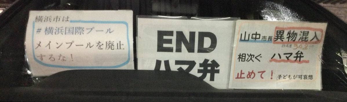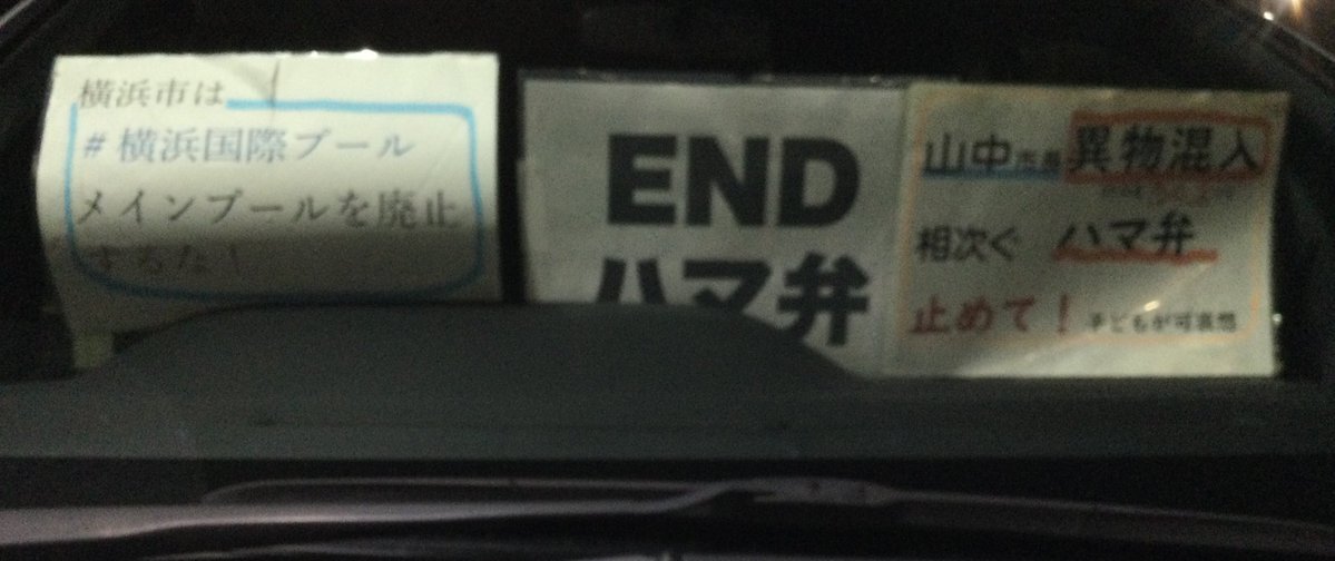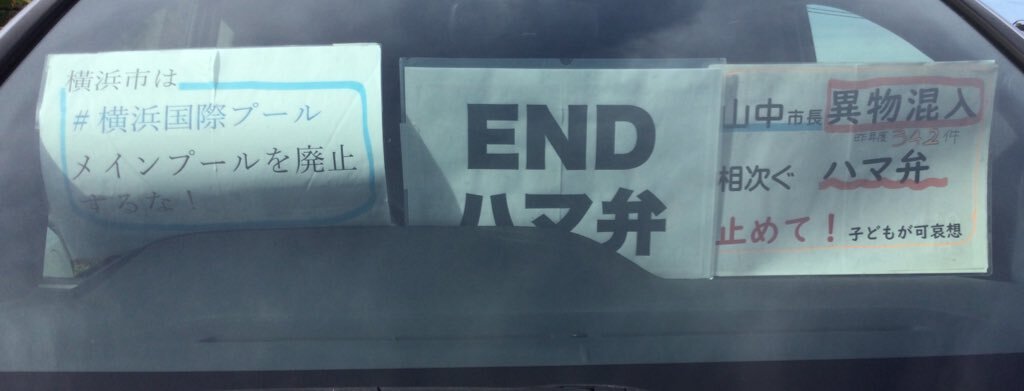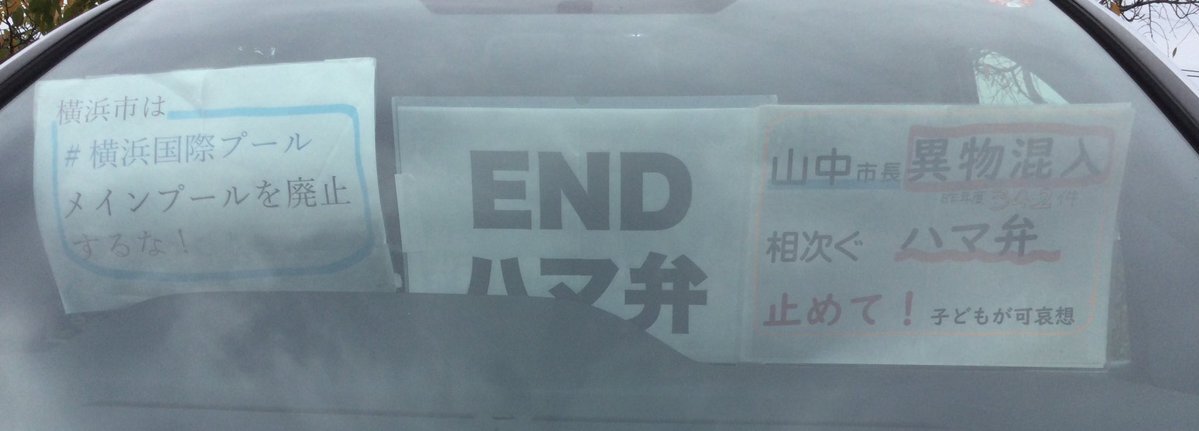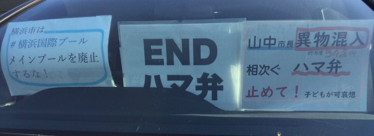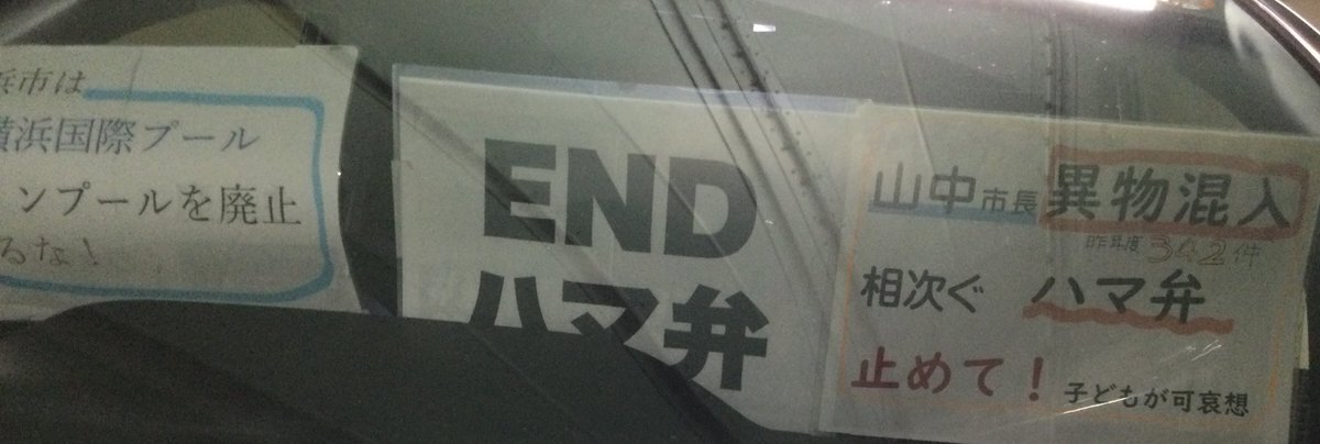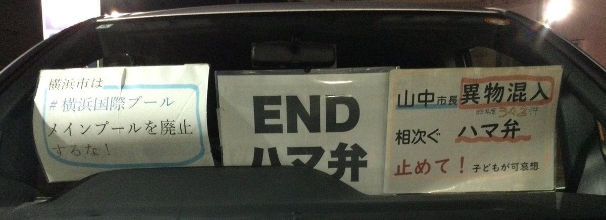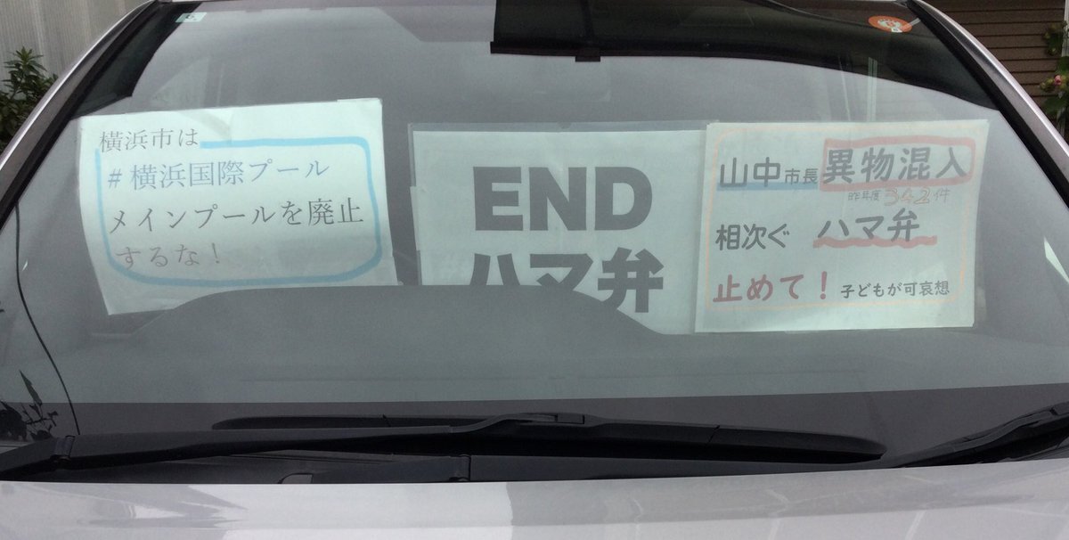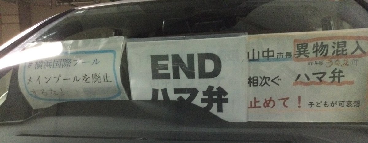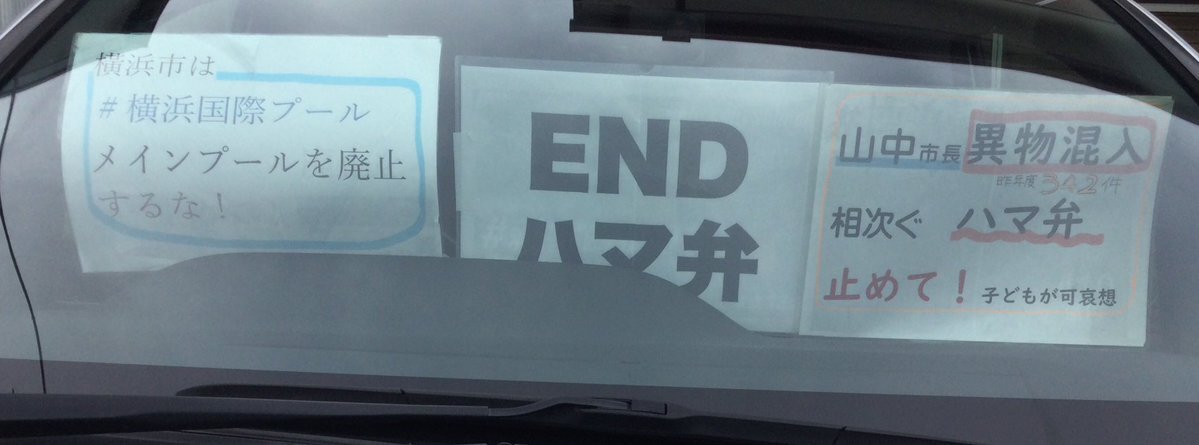 1日一回車に掲示 20251106 #横浜国際プールメインプール廃止するな#ENDハマ弁 📣山中市長は異物混入相次ぐハマ弁止めて!(昨年度342件!)子どもが可哀想 #ダッシュボードプロテスト pic.x.com/UHXsddwmCW