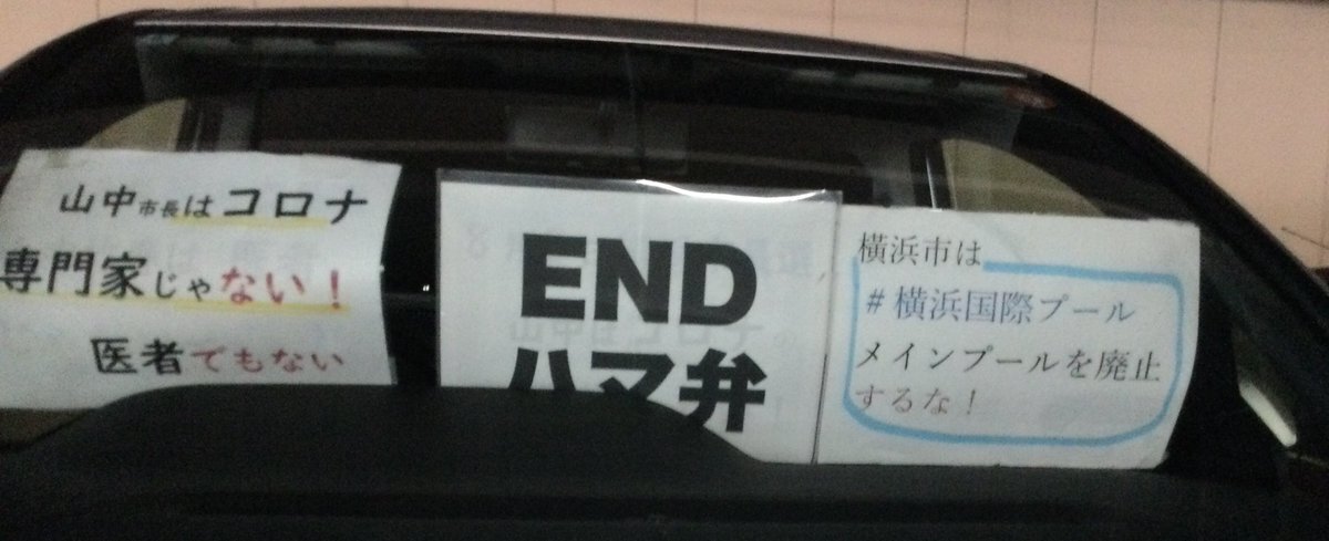 1日一回車に掲示 20251023~4 #横浜国際プールメインプール廃止するな#ENDハマ弁 山中市長はコロナの専門家じゃない!医者でもない #ダッシュボードプロテスト pic.x.com/Sm3p0pfJ9o