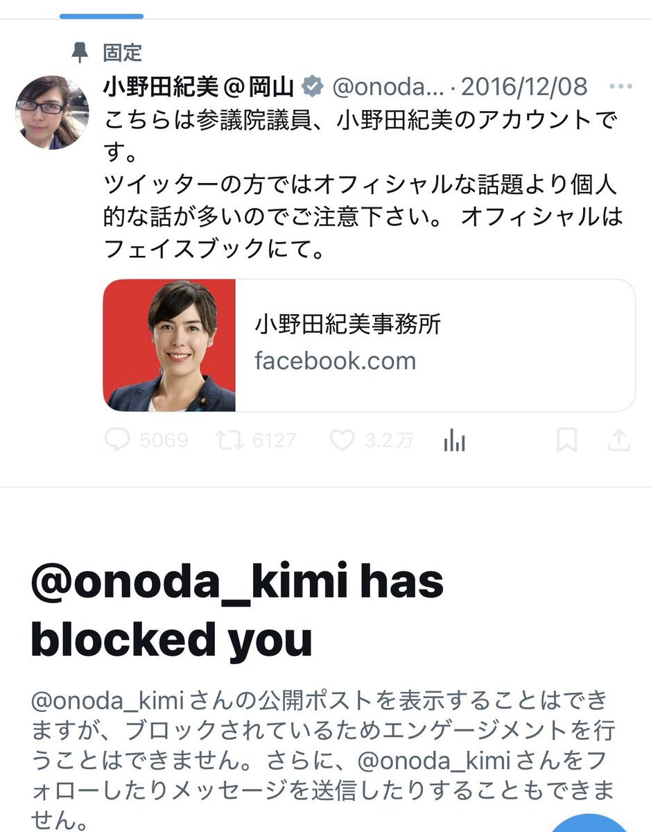 驚いた! こんなただの一国民である私の事ブロックしてる。 絡んだこともなんならツイート見たこともないのに🥺 情けない。勇ましい事言ってても国の大事には逃げるタイプですね😒 そして大切にすべきは国民ですよ。 #小野田紀美 #自民党は日本人の敵 #END高市政権 pic.x.com/e7VTZmcjXm