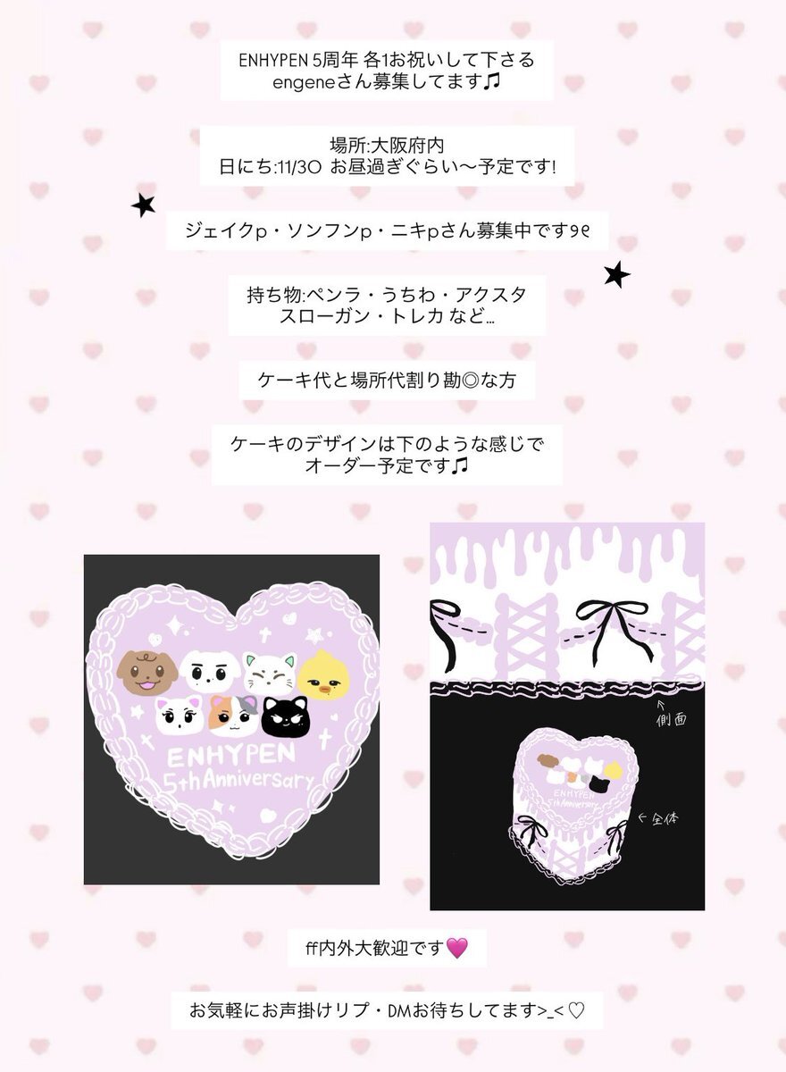 ENHYPEN5周年 各一で祝えるソヌpさん探してます( ˇᵕˇ )♥️✨ 場所 福岡、日程 11/30、ソヌpの方 お気軽にリプ・DMお待ちしてます🫸🏻🫷🏻♥ #ENHYPEN #ENHYPEN5周年 #enhypen5thanniversary #engene #ENGENEと繋がりたい