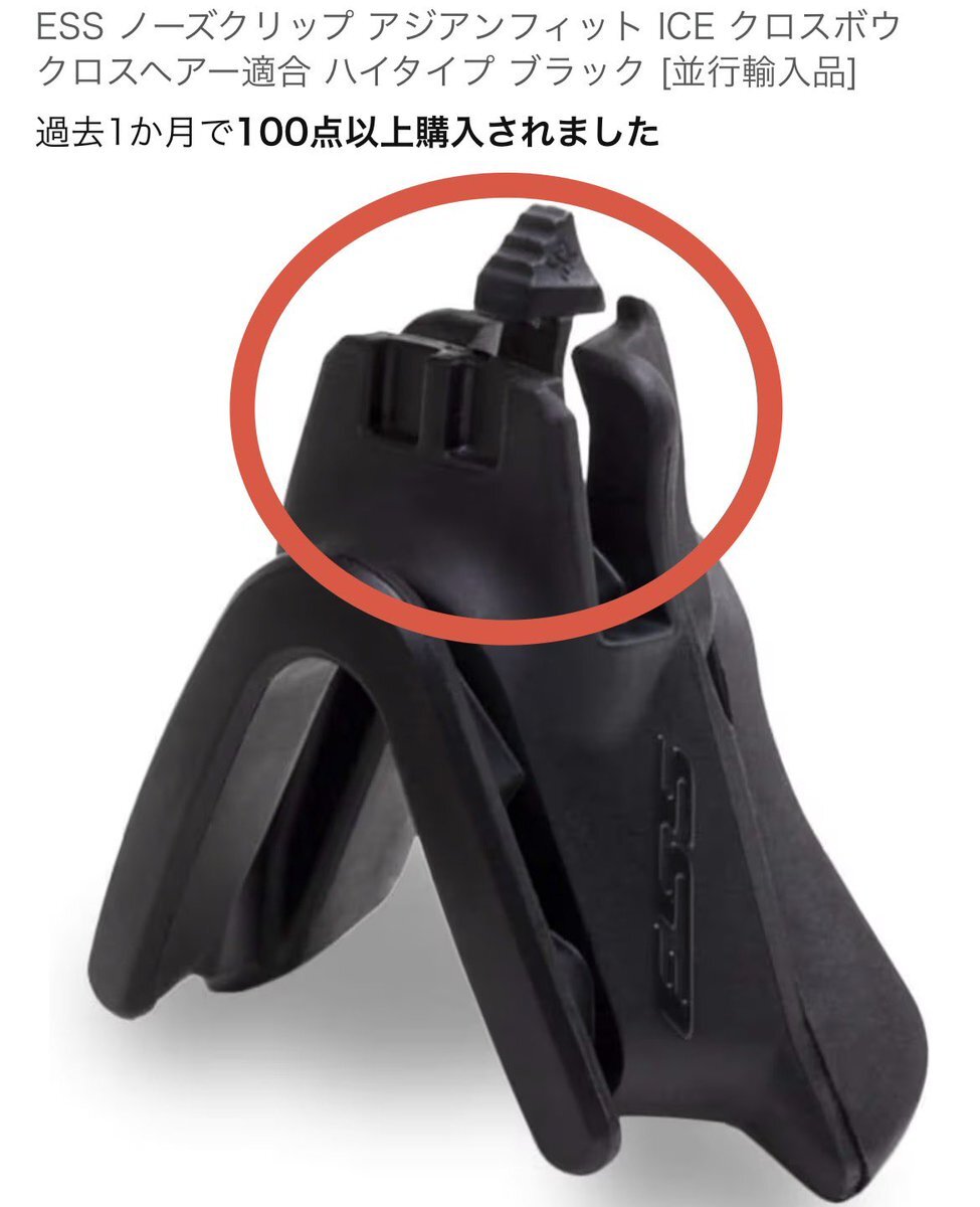 ESSノーズクリップのハイタイプにだけこういう部分があるけど、何のためにこうなってる? 理由がわからず、見た目も気になるため切り落として使っているが。 #ESS pic.x.com/Lr3fMs1tYN