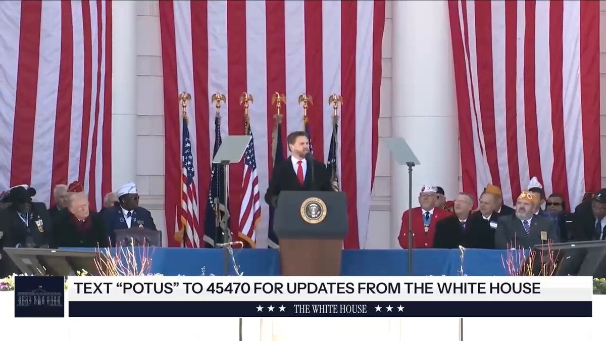 Vice President Vance delivers remarks at Arlington National Cemetery honoring America's veterans. “Our sacred responsibility to our veterans is to make sure that the American military is the bravest and best fighting force anywhere in the world.”
