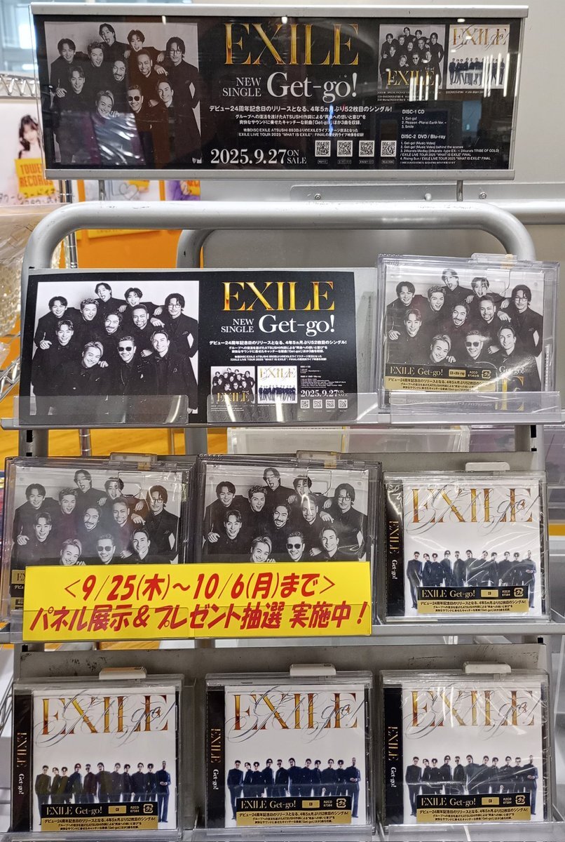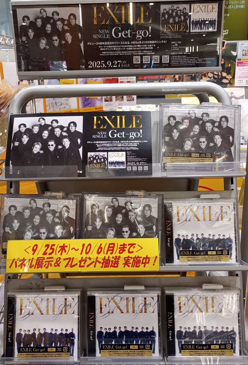 【#EXILE】 ニューシングル『Get-go!』 好評発売中です‼️🙌 往年の"EXILE感"がたっぷり詰まったキャッチーな1曲が最高過ぎます♫ 当店では発売を記念してパネル展実施中!✨ 抽選でパネルプレゼントもございます!🎁 #EXILE #EXILE_Get_go #新星堂 #柏 pic.x.com/7HbyJZ6nIt