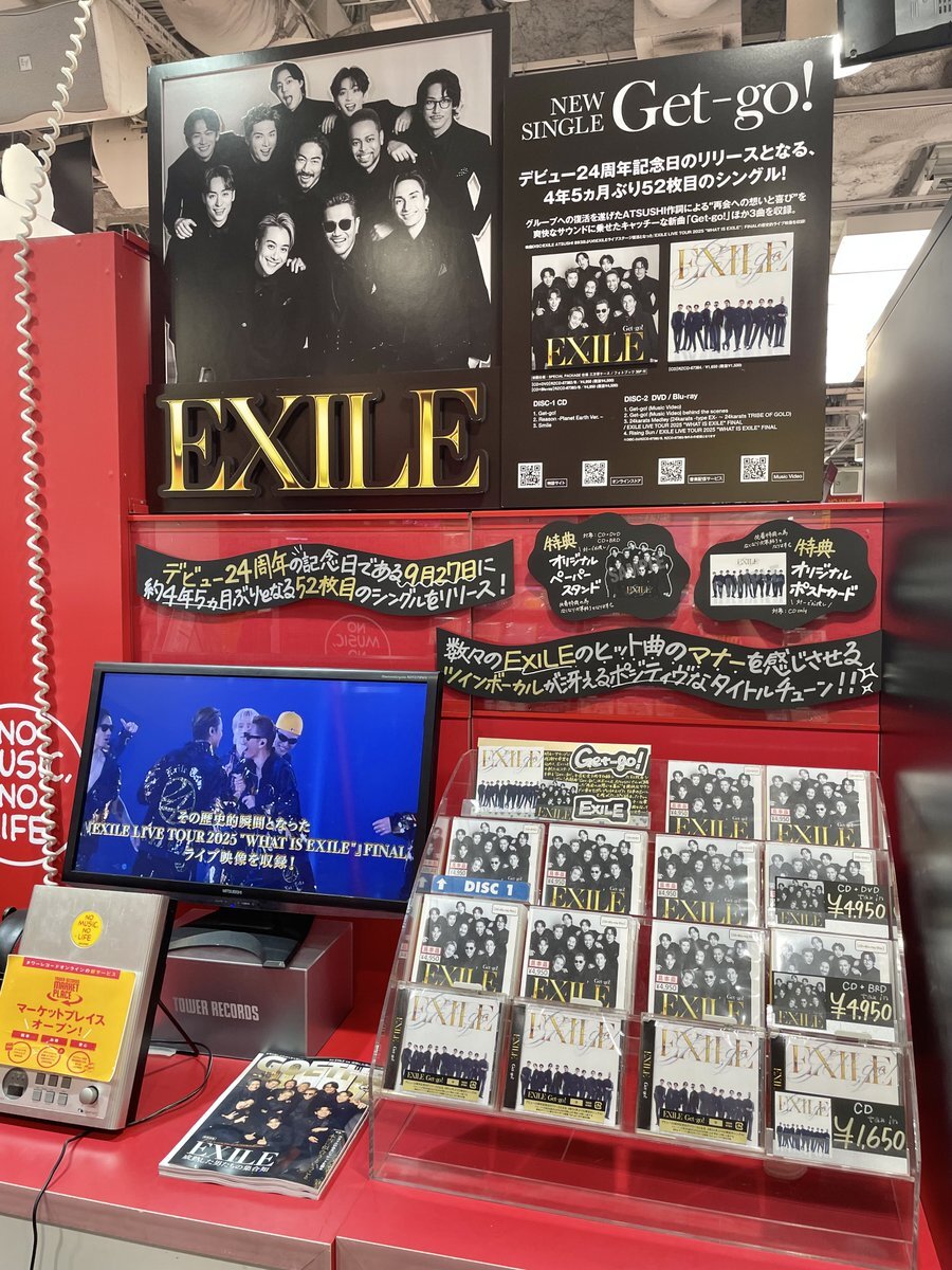 【#EXILE】 EXILE 待望のニューシングル『Get-go!』 好評発売中です🎉🎉 EXILE ATSUSHIの完全復活後初となる今作✨ 再会への想いと喜びを爽快なサウンドに乗せてPOPナンバーです🎼 tower.jp/article/featur… #EXILE_Get_go pic.x.com/TBjeoLRF9B