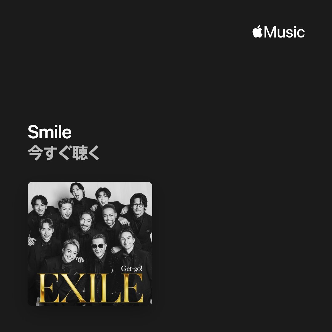 / #EXILE 新曲「Smile」が #AppleMusic のプレイリストに 選曲されました! \ 🎧ニュー・ミュージック・デイリー music.apple.com/jp/playlist/%E… 🎧最新ソング:J-Pop music.apple.com/jp/playlist/%E… 「Get-go!」と共に楽曲をお楽しみください! music.apple.com/jp/album/18353… #EXILE_Get_go @AppleMusicJapan pic.x.com/hCjYVnBSE0