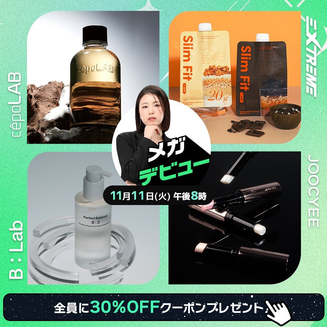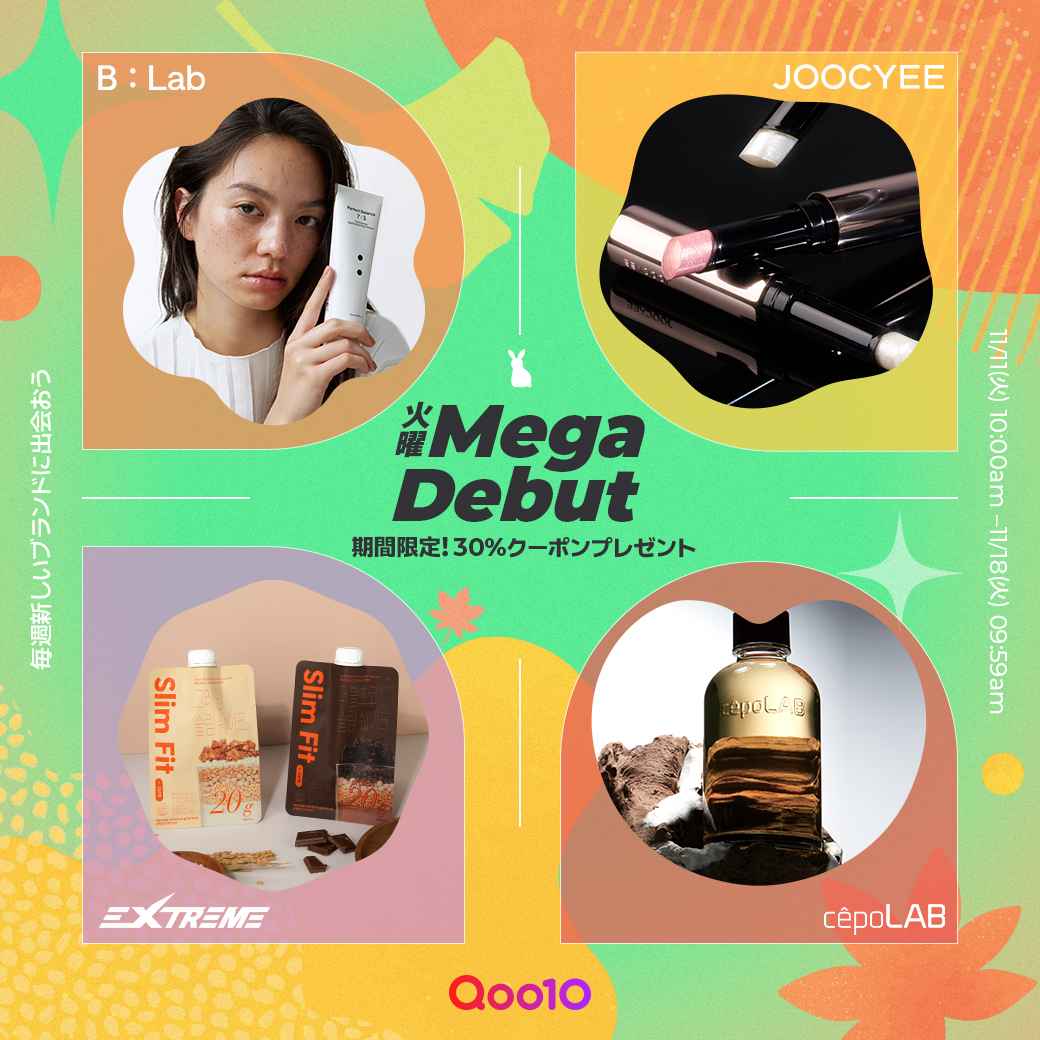 🗓️11/11(火)20時~ #メガデビュー LIVE開催📺💚 「#B:Lab」「#Joocyee」「#EXTREME」「#cepoLAB」が初登場✨ LIVE限定🎁 ✔30%OFFメガデビュークーポン ✔質問王👑 抽選でギフトカード 配信を見ながらお気に入りを見つけよう💕 👉 #Qoo10 アプリからチェック📱 bit.ly/3JjnZKt pic.x.com/8ZduJi078p
