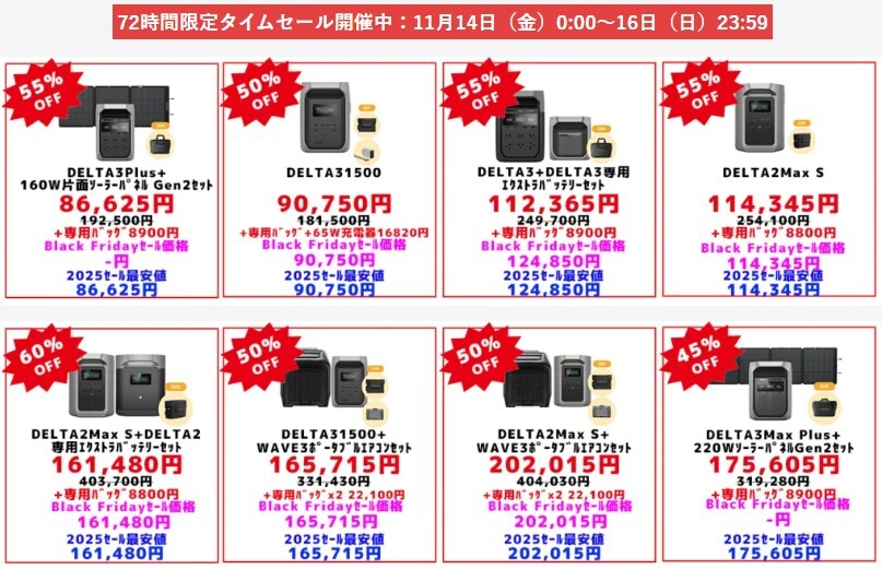 \タイムセール終了迫る!/ #EcoFlow ブラックフライデー #セール 第一弾「72時間限定タイムセール」 残り8時間を切りました セール詳細はプロフのURLから #エコフロー セールページだけでは分からない、全商品の割引価格・過去最安値を見やすく載せました タイムセールはこんなにお得です! pic.x.com/UVNXZO8u9Q
