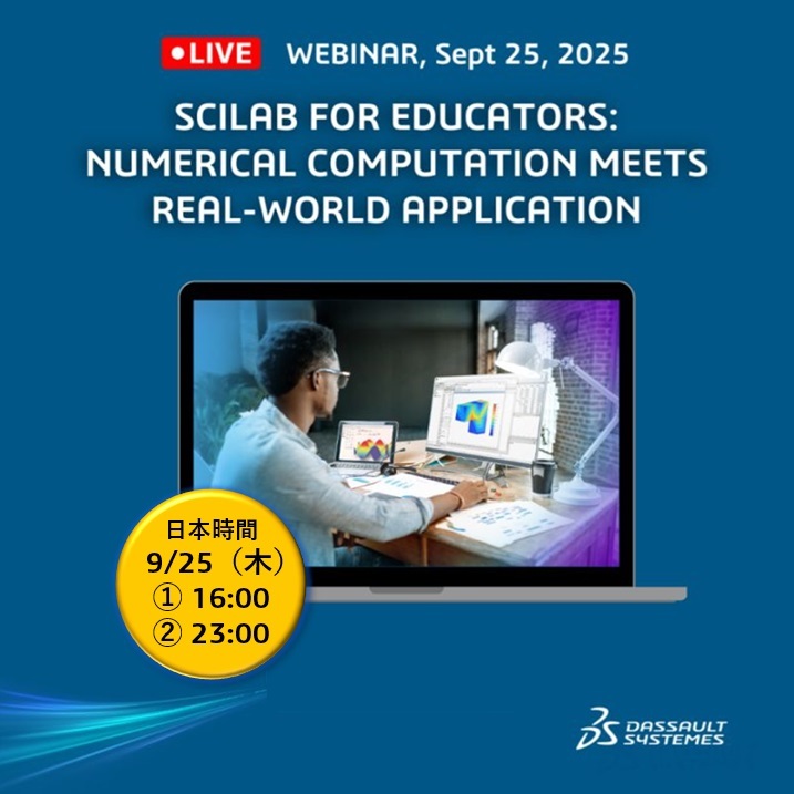 数値計算システム #Scilab について教職員向けウェビナーを開催📢微分方程式、制御システム、数値最適化などカリキュラムや導入事例をご紹介いたします。お申し込みはこちら👉 go.3ds.com/TTAF #Engineering #Innovation #Design #EdTech #Teaching #YourSkillsOurFuture #3DXEDU pic.x.com/WwbLnGjxtr
