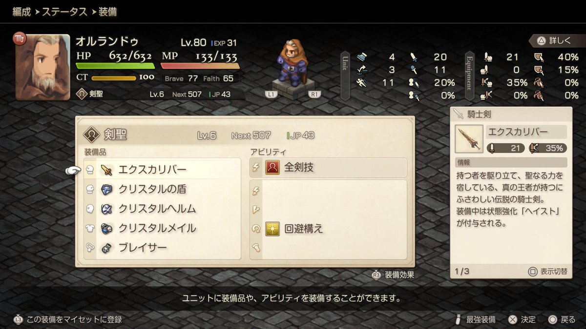 ゲームクリアです(戦力的な意味で) 当時進行度先行していた友人から噂は聞いていたが、改めて自分で仲間にして装備、アビリティ見て驚愕したのを覚えてるww 他ゲーならこの強さのレベルのキャラは途中で抜けるのが普通だしねww #FFタクティクス pic.x.com/YlQXwPq40s
