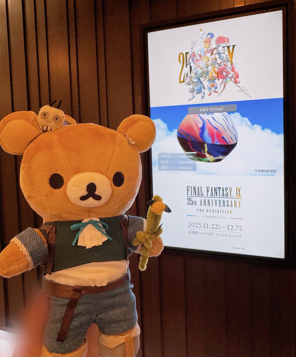 ずっと楽しみにしていたFF9展初日に ジタン風のお洋服を着てもらったリラックマと共に行ってきましたヾ(*´▽`*)ノ この会場にいる人はみんなおんなじFF9のファンなんだと思うと、それだけでとても嬉しかったです。たくさんのイラストや資料に感動しました〜! #FF9展に行ってきました #FFIX25th #FF9 pic.x.com/r1MziM9hln