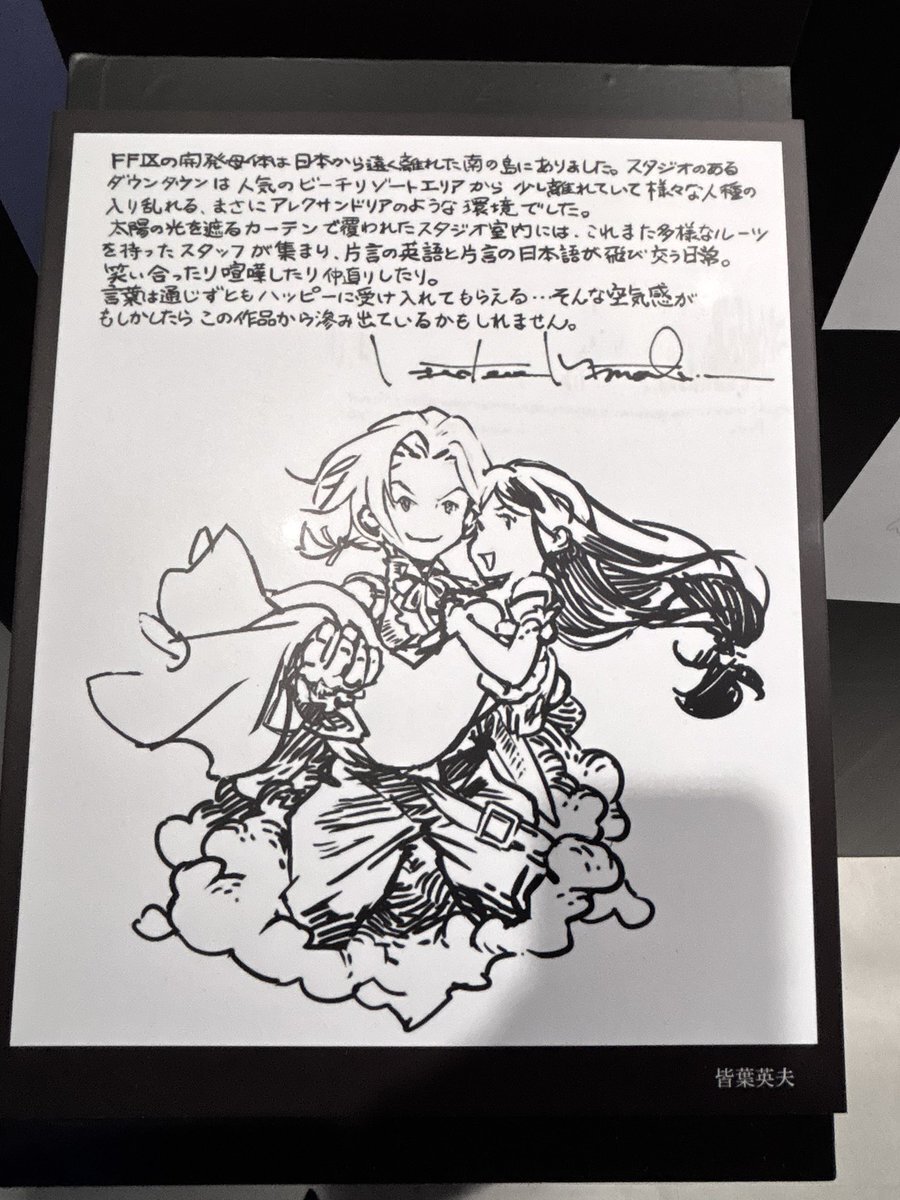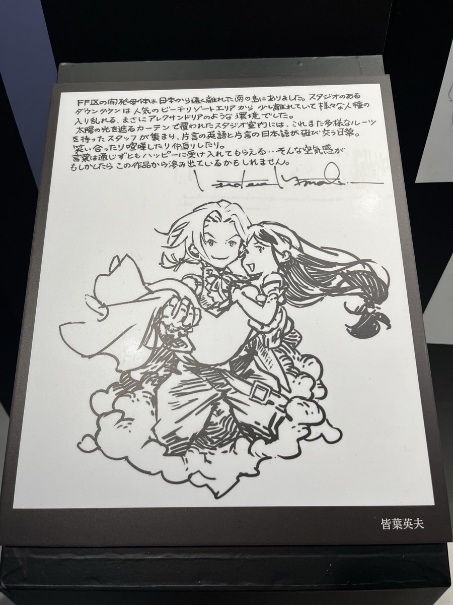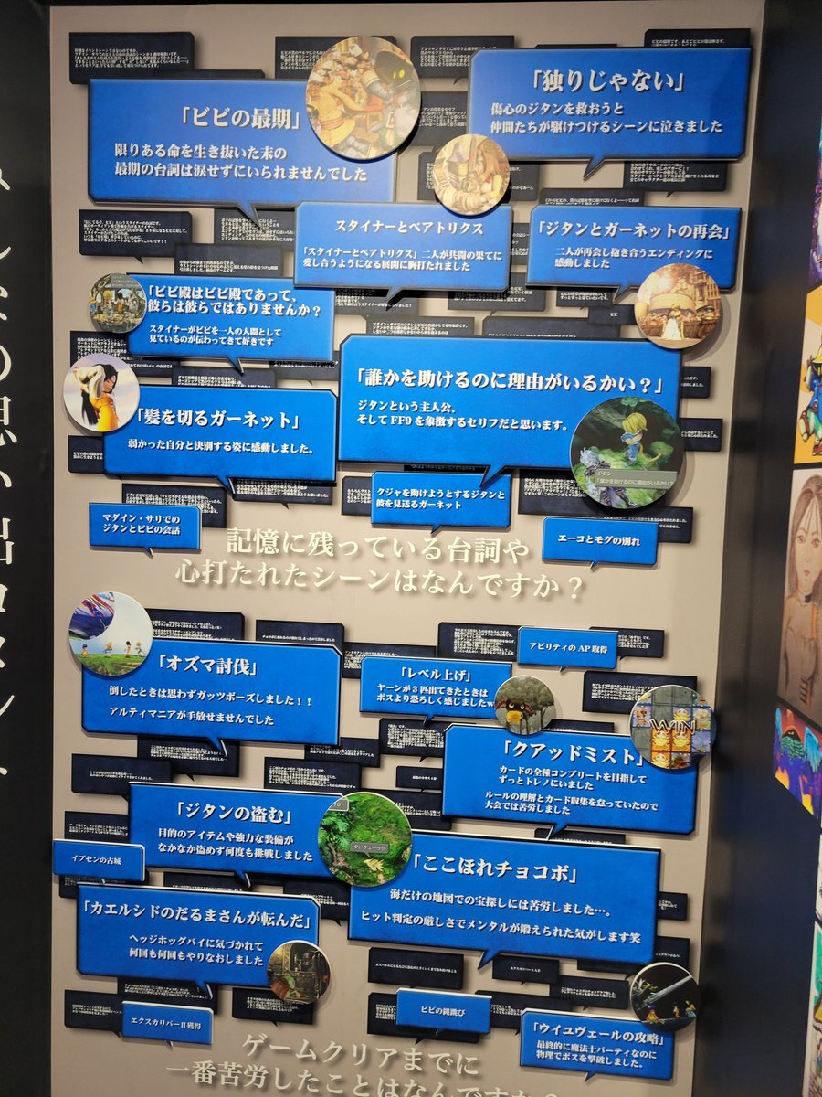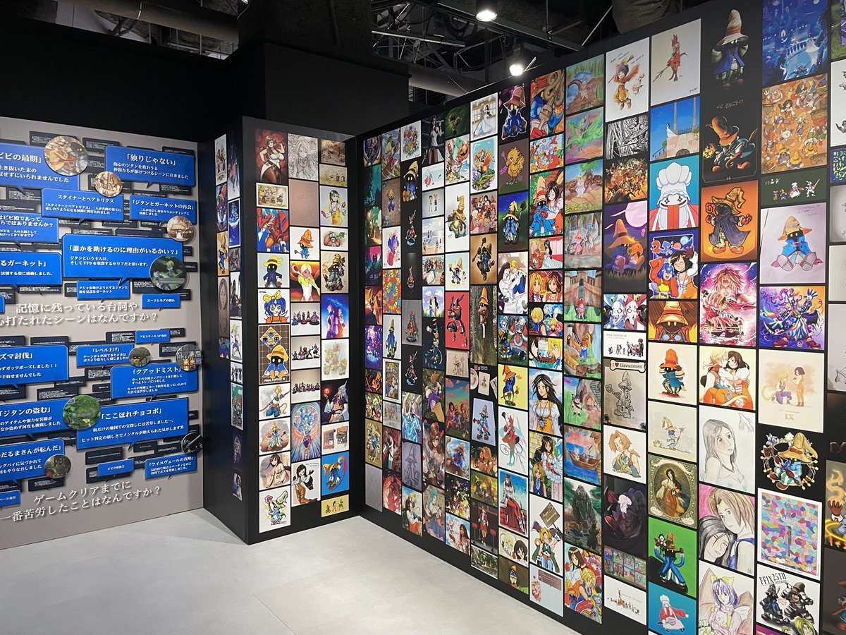 超絶混んでて、3回くらい逆走して人少ないタイミングで撮った写真。文字読んでると他の人の撮影の邪魔になるから、基本的に絵だけ見て、文章は写真撮ってきたやつを帰って読むようにしても2時間滞在してた。前売りもう一枚あるからまた行く。ファンアート企画参加忘れてた〜。 #FF9展に行ってきました pic.x.com/KPstcLavEz