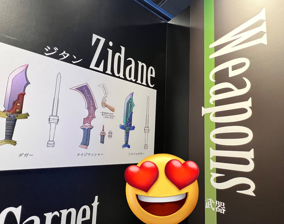 #FF9展に行ってきました ③メインキャラ達の武器全部の設定資料!圧巻でした!推し武器〜⚔️ アイテム達の入手場所が書かれて、前に居た人達が「え、こんなのどこで貰った?」って言ってる人がいたりしたアイテムもありました!! あと身長差+横幅(?)みて驚いてる人多かった!(ジタンの身長とかw) pic.x.com/o1ZsBDstXp