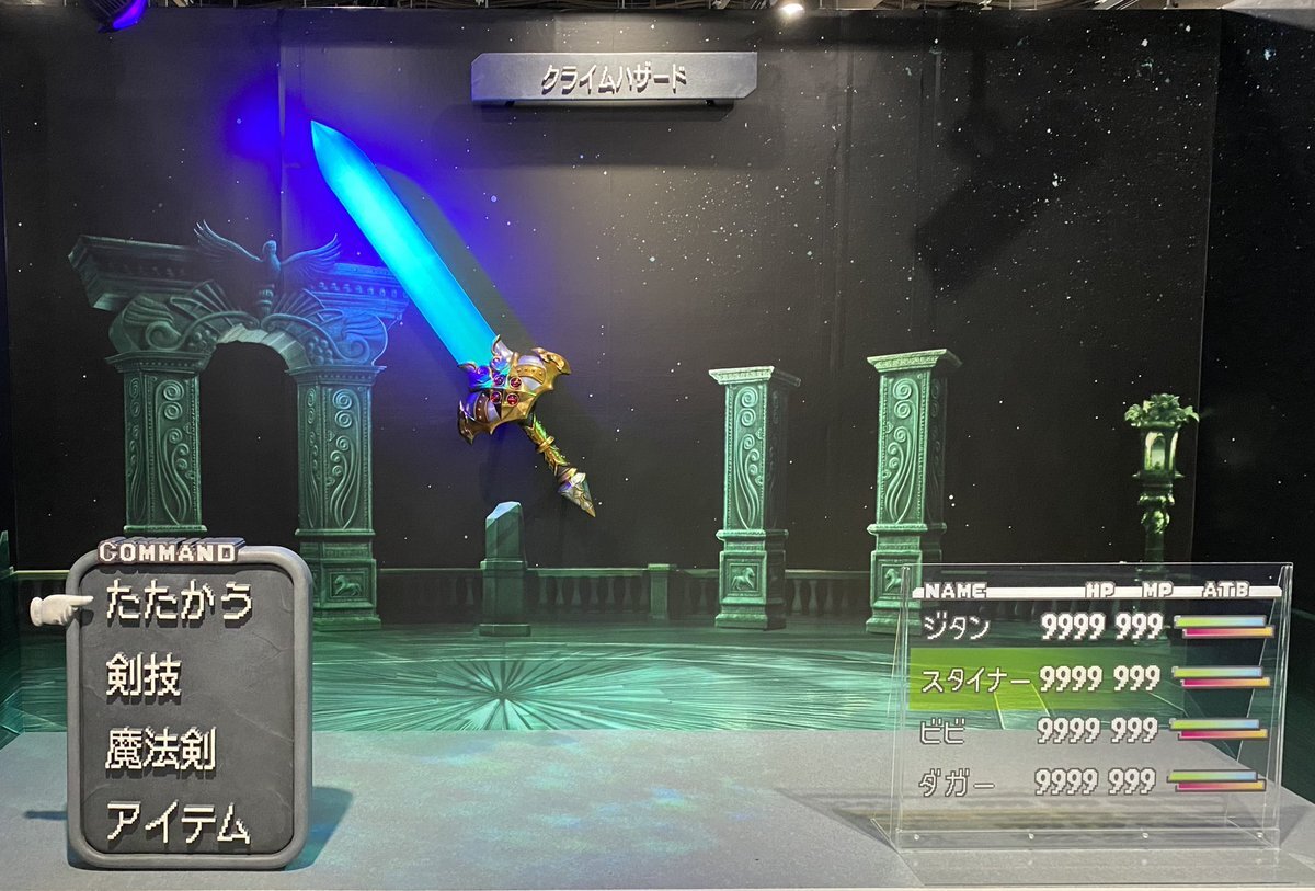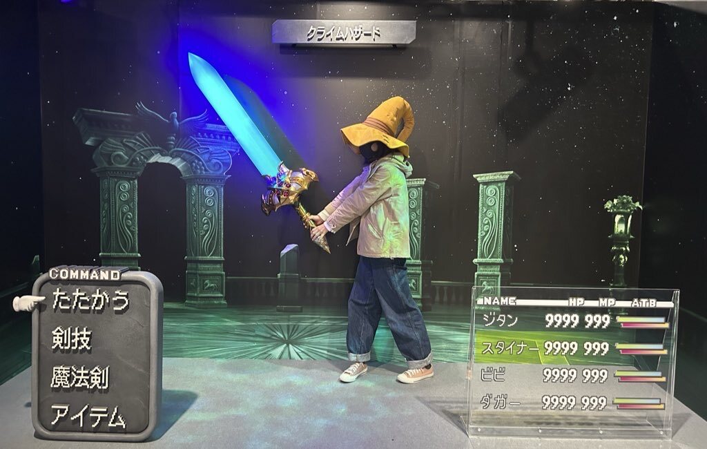 イラストや当時の考案、キャラ設定、武器やアイテム、またはトンベリちゃん等のモンスターまで幅広く展示されており濃い時間が過ごせました エクスカリバーIIはぼっちでも問題ないようスタッフさんが待機しており神がかってました 是非ビビの帽子所持者は被って撮影して欲しい #FF9展に行ってきました pic.x.com/h5bDXDATxH