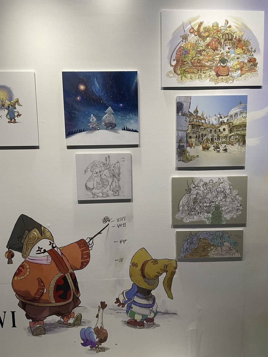 #FF9展に行ってきました ④カラーイメージイラストが9枚ほど飾られてて、カフェにも描かれてるジタビビCG絵もありました! ビビの絵本ゾーンにはボツ絵のラフ画かな?も飾られておりすごい可愛かったです🥰 そして噂のエクスカリバーⅡゾーン!! ゲームの中に入り込んだみたいになって最高でした❤️ pic.x.com/5MW7IsHjqC
