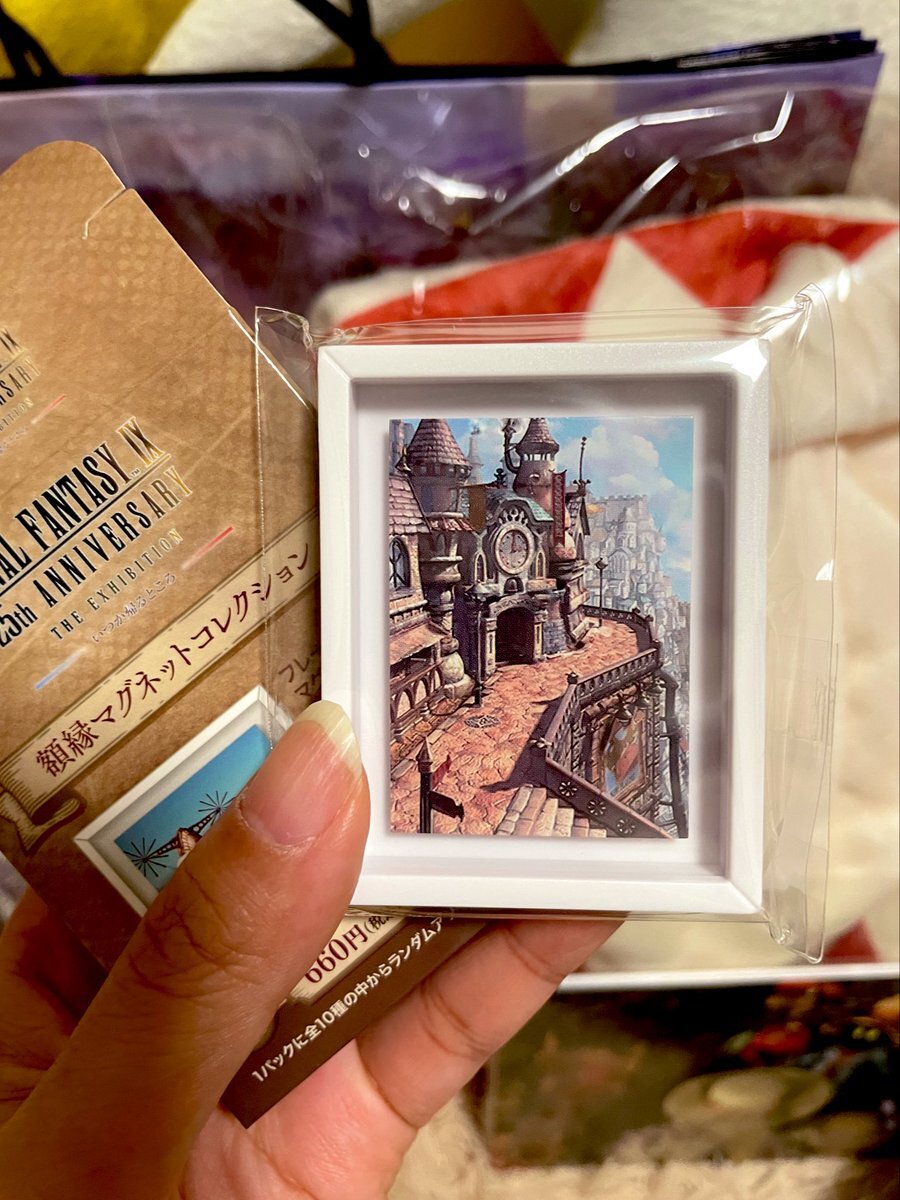 う、うお〜!リンドブルムの背景とクジャ狙いで、それぞれ全10種のランダムのやつ1個ずつ買ったら大勝利!クジャは唯一箱に対して余白が少ないのでちょっと箱揺らしてみて絶対これだと思った。大丸ポップアップで売り切れてた絵本とクリアファイルもゲット。サイン本は売り切れ #FF9展に行ってきました pic.x.com/KnJDRpvzJF