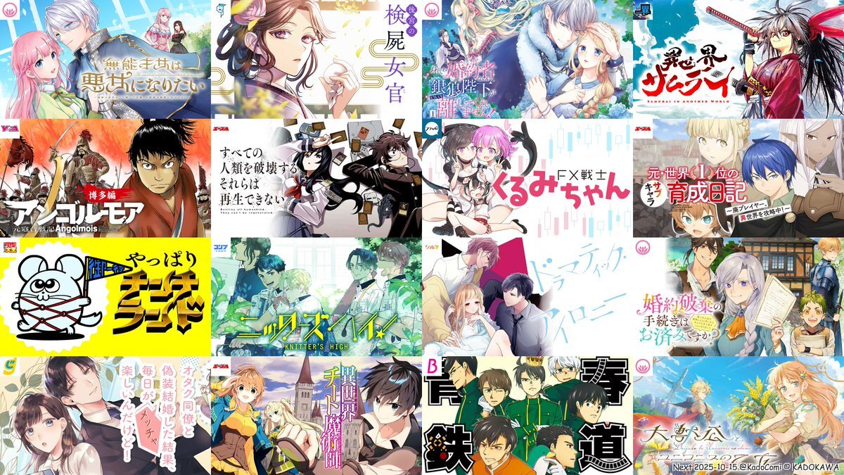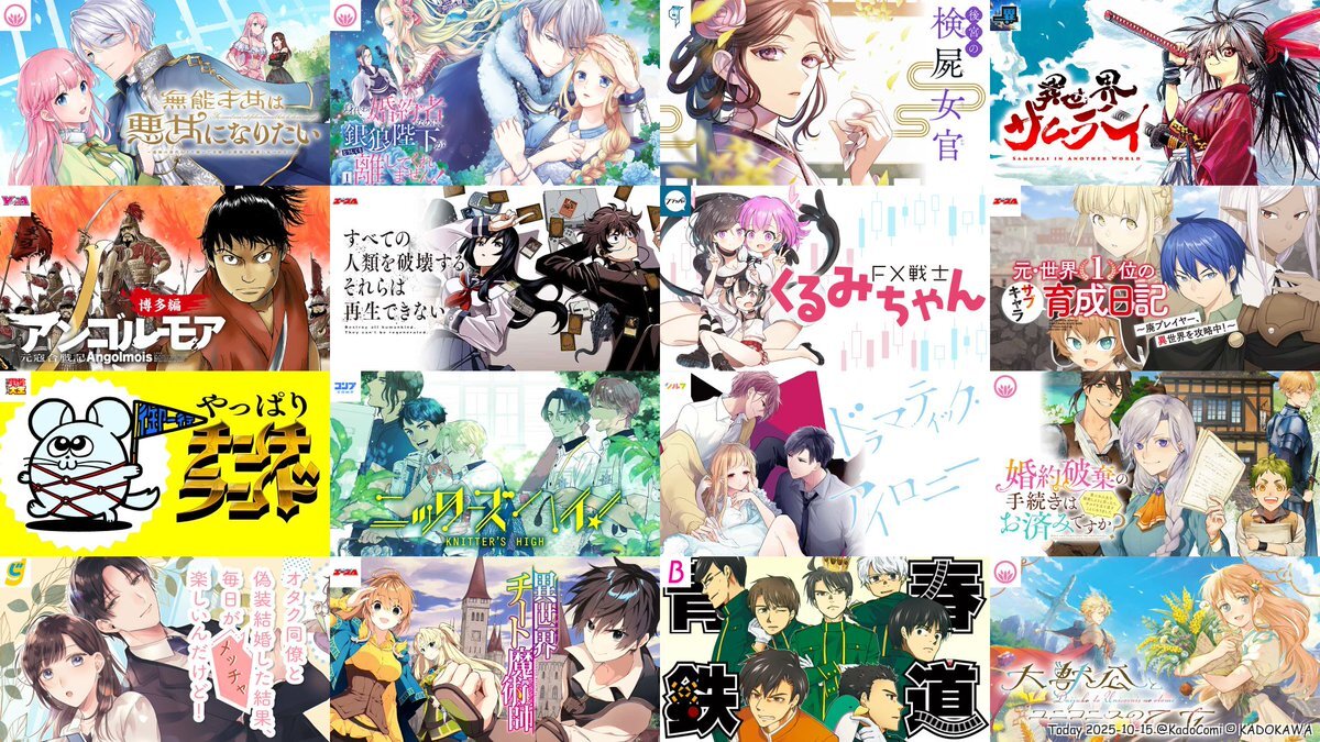 🆕 10/12(日)の #カドコミ 新着情報! #FlosComic : 4件 #アライブ+ : 2件 #電撃大王 : 2件 その他 : 2件 / 計 : 10件 新着作品はこちら 🏡comic-walker.com/newkado.comi.moe pic.x.com/jyksRO70dg