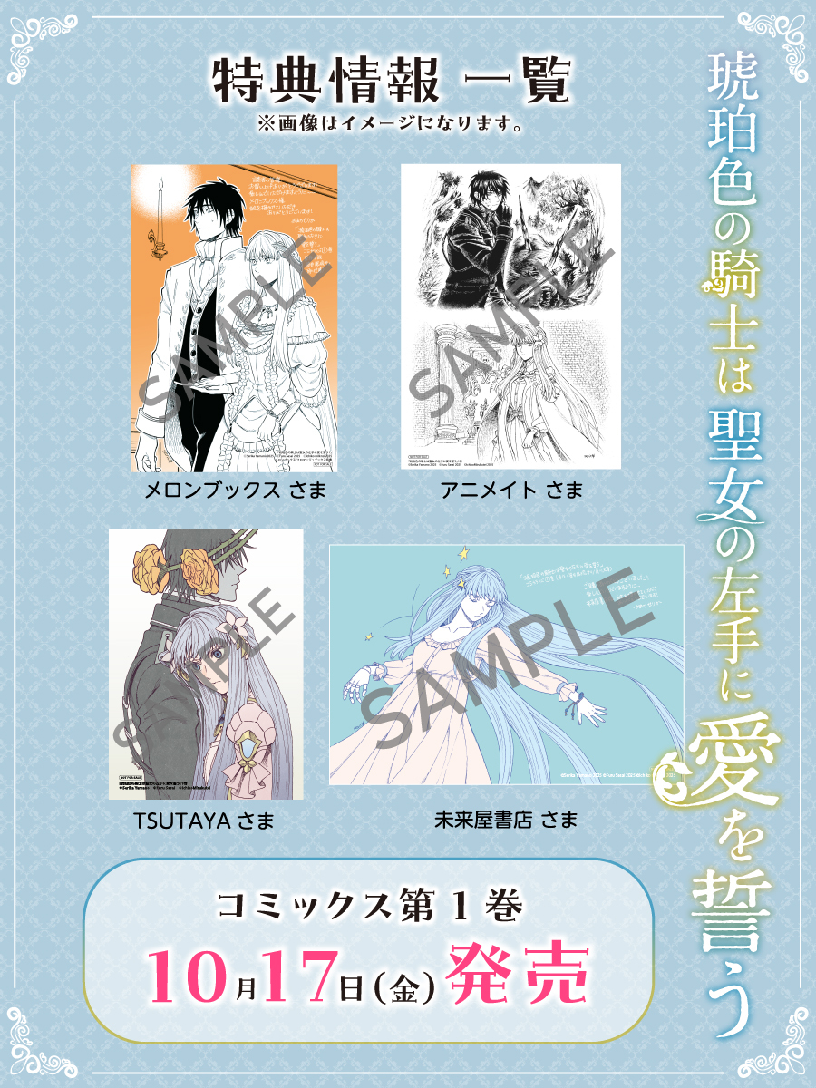 ⋱🩷10/17(金)発売🩷⋰ 『#琥珀色の騎士は聖女の左手に愛を誓う』コミックス1巻 対象店舗で購入すると特典もついてきます✨ 特典はなくなり次第終了となります! 詳細は各店舗や書店様のHP等でご確認ください #FlosComic pic.x.com/PDxHqpiVg1