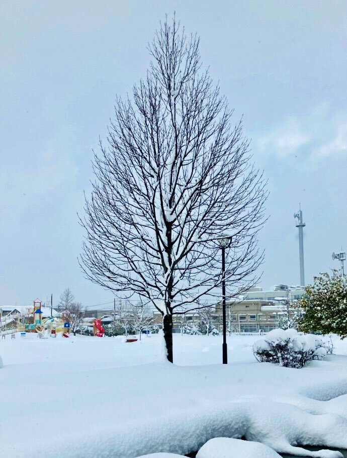 今日も #ヨリミチトソラ にお付き合い頂きありがとうございました😊   来週は初雪となるかしら☃️   写真は昨シーズンの雪です。木の奥に見えるのはFMとやま社屋です📻   ここまで #田島悠紀子 でした。   月曜は #ナベッチ です🧢   #FMとやま pic.x.com/RUpboIaK3E