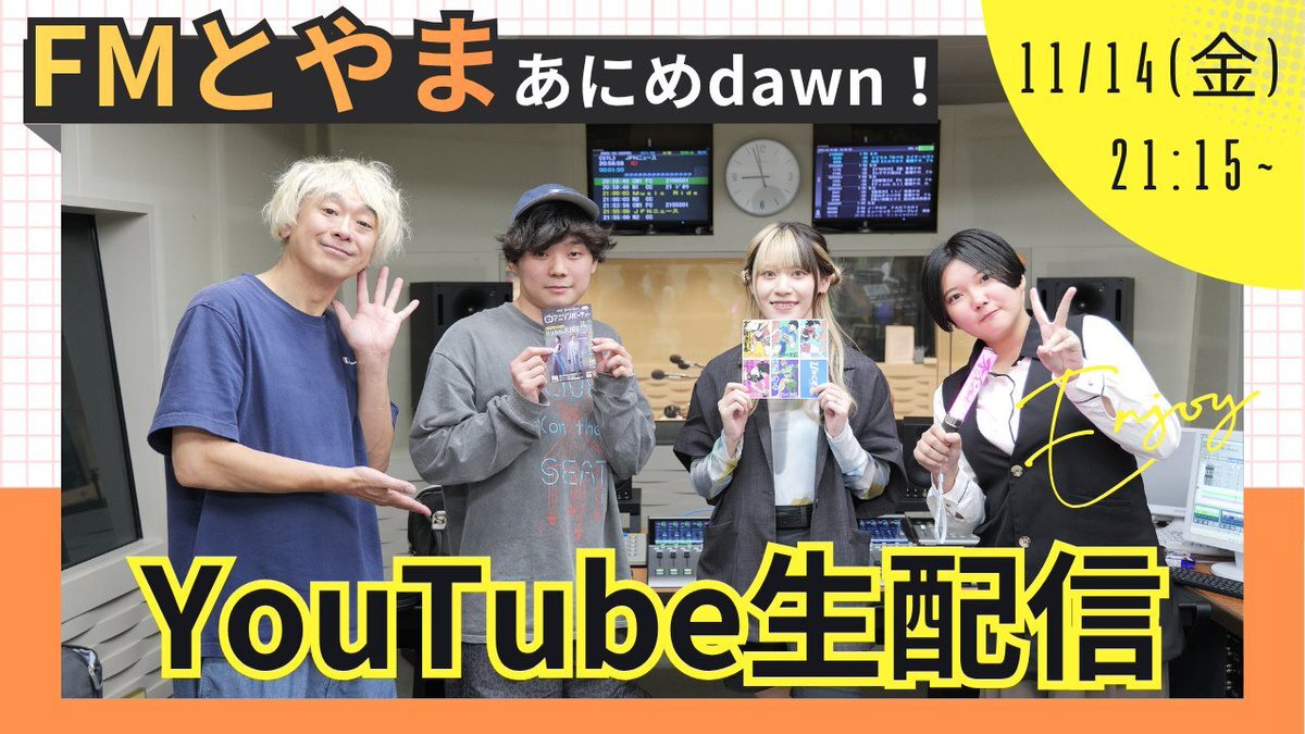 / YouTube生配信🐳 \ 11/14(金)21:15〜 配信スタート📷 生放送終了後に、FMとやま公式YouTubeチャンネルより生配信を行いま〜す✨ リアルタイムでのご参加お待ちしてます😉 URL▶️youtube.com/live/62XPKNEOY… #あにめdawn #fmとやま pic.x.com/CLogMwVee0