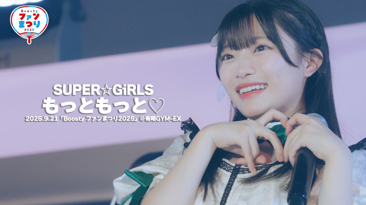 「もっともっと♡」 from Boosty ファンまつり2025 をスパガちゃんねるで公開しました🎤 youtu.be/Lg9xNP1Yyj8 ▼FNS歌謡祭出演をかけた 無料投票もご協力お願いします! official.idolfes.com/s/tifst/ #スパガFNS #TIF2025 #FNS歌謡祭 #スパガ pic.x.com/jLls9FQmlI x.com/SUPERGiRLS_AMG…