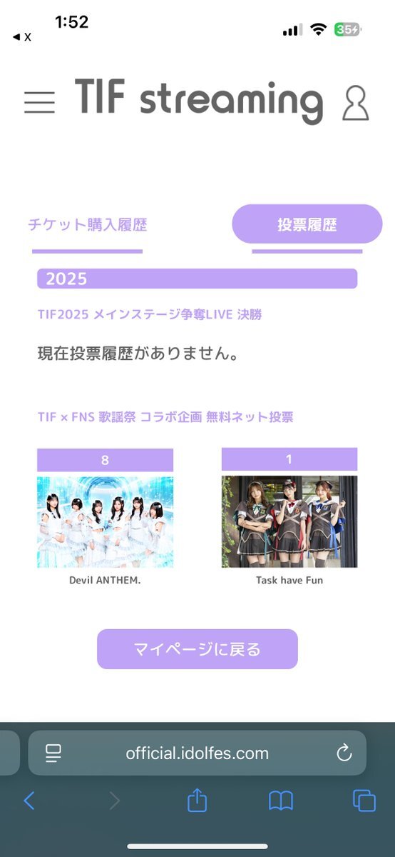 事務所の先輩 #TaskhaveFun さんが #FNS歌謡祭 出演をかけたTIFコラボ企画に参加しています!💜🔥 途中経過3位です‼️ 1日1回無料投票!絶対お願いします⬇️⬇️ official.idolfes.com/s/tifst/?ima=0… 私も毎日している!!!!!!🗳 #ギガラビ pic.x.com/vPOQE5xkvT x.com/taskhavefun_st…