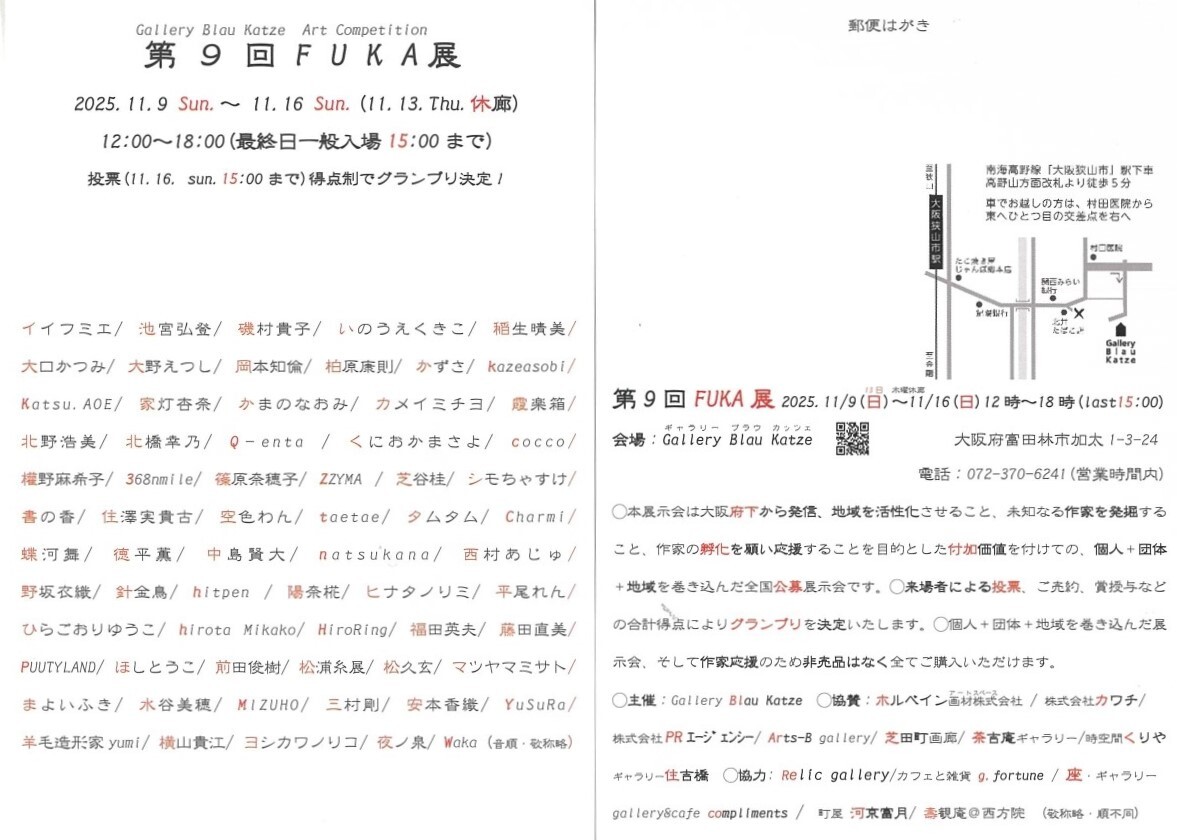 【個展なび-今日から開催】第9回FUKA展@Gallery Blau Katze(大阪府) 11/16(sun)まで koten-navi.com/event/191269 #個展なび #大阪府の展覧会