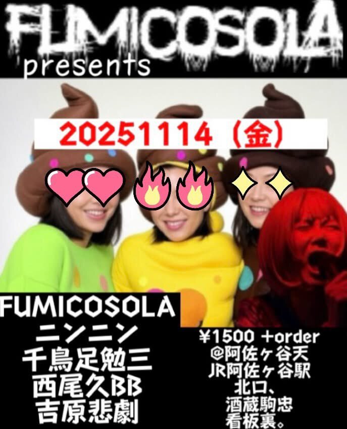 動画提供、西尾久七尾様、 曲名「三ノ輪の女帝」20251011(土)鶯谷what's up、FUMICOSOLA #FUMICOSOLA #ふみこそら #オカニワフミヒロ #ソラちゃん4号 #鶯谷Whatsup #鶯谷ホワッツアップ #オリジナル曲 pic.x.com/uUkjxbIc5t