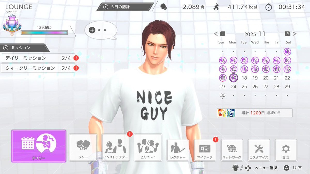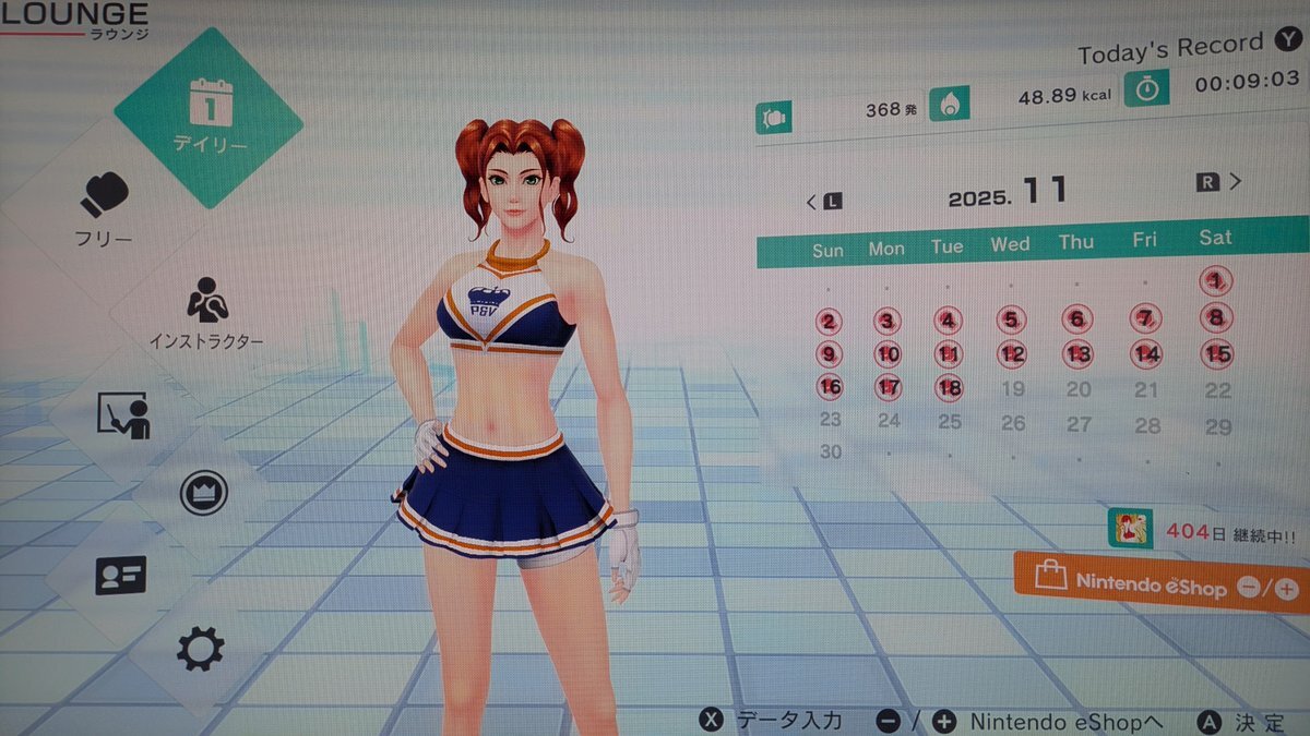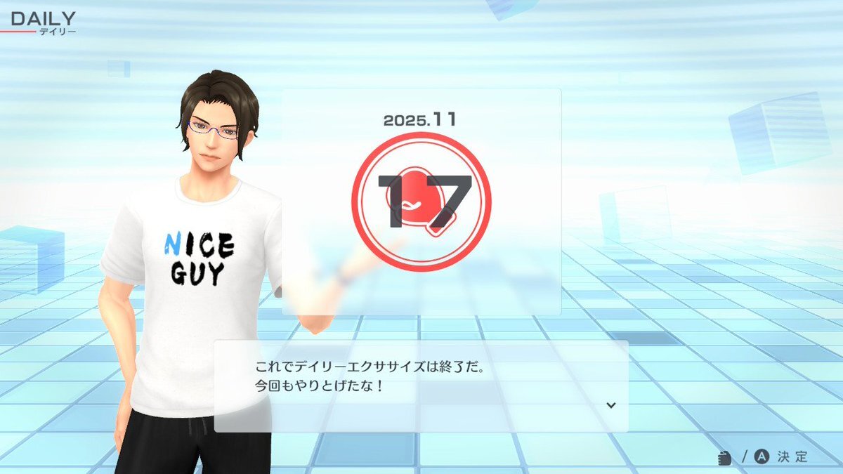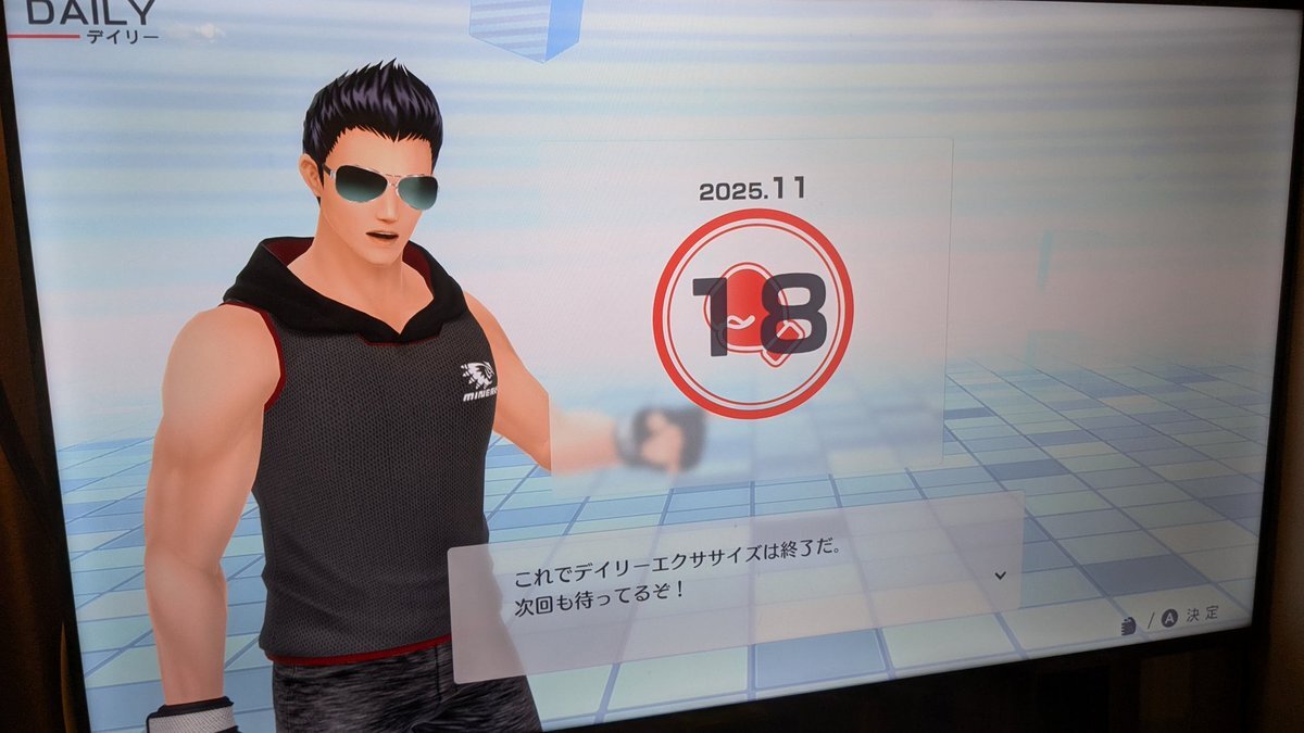 連続180日目、ヒロさん90日目。 ヒロさん(石田彰ボイス)このまま続行。 哭倉村フィットネスクラブインストラクターとして頑張ってもらいます。 #NintendoSwitch #FitBoxing2 #フィットボクシング2 pic.x.com/TLzCwcCU45