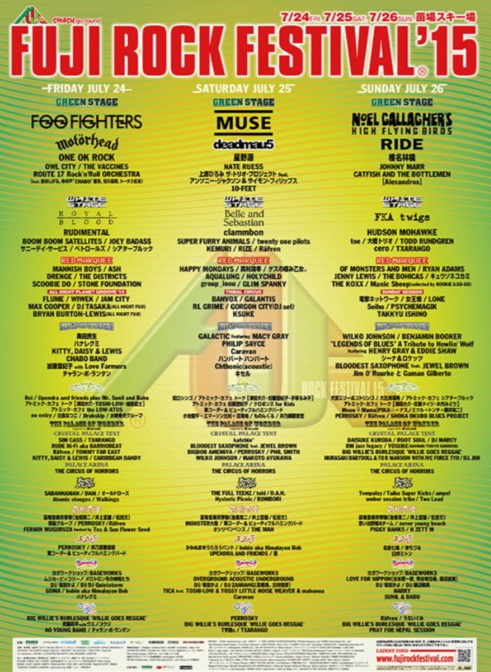 フジロック2015のヘッドライナーだったFoo Fighters、Muse、ノエル。 まさか10年後、それぞれがワンマンで来日するなんて(しかもノエルはOasisで!)。 誰が予想できただろう。 #FooFighters #Muse #Oasis pic.x.com/ahRahjucsw
