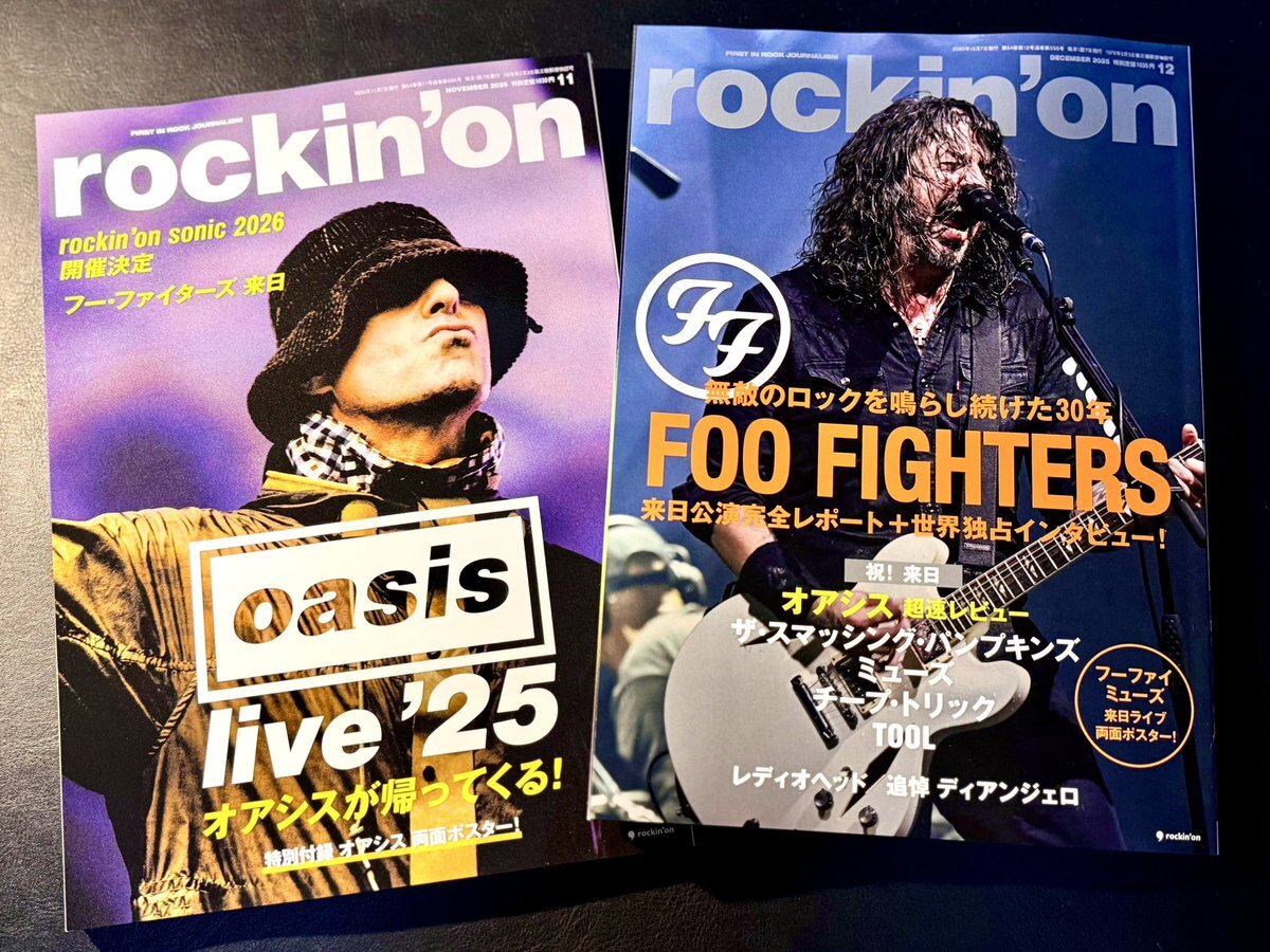買ってきた!リアルタイムで音楽雑誌とライブの思い出を共有出来るの嬉しい♪2号続いてこの表紙の絵面の強さよ!もう大好きしかない!(OvO) #oasis #foofighters #rockinon pic.x.com/XtitiYcCoP