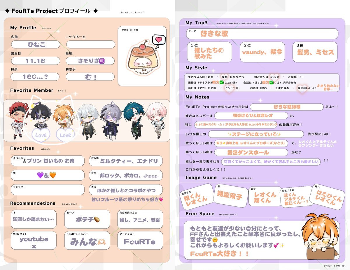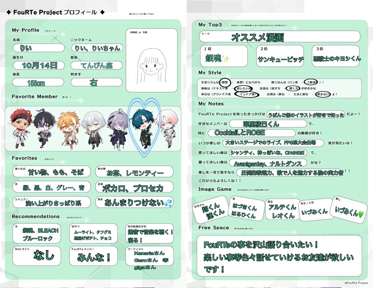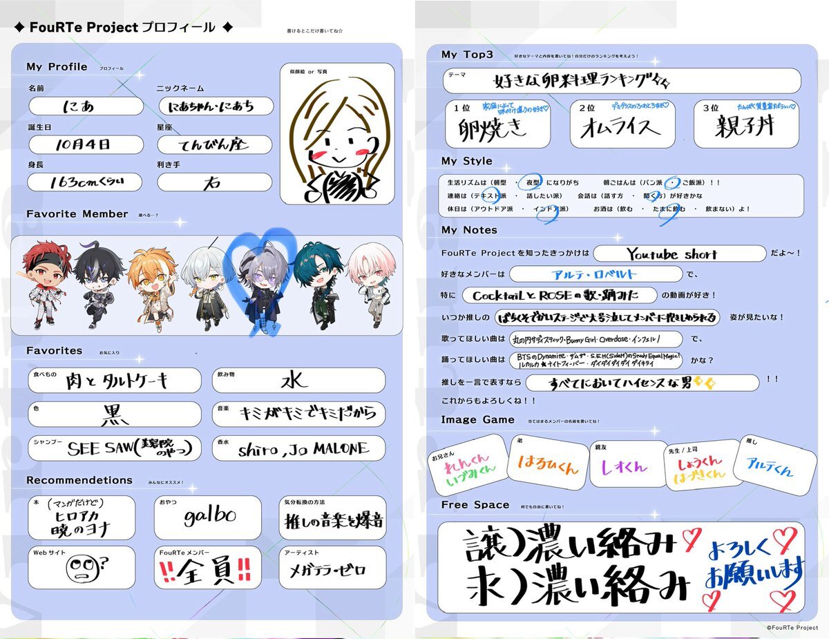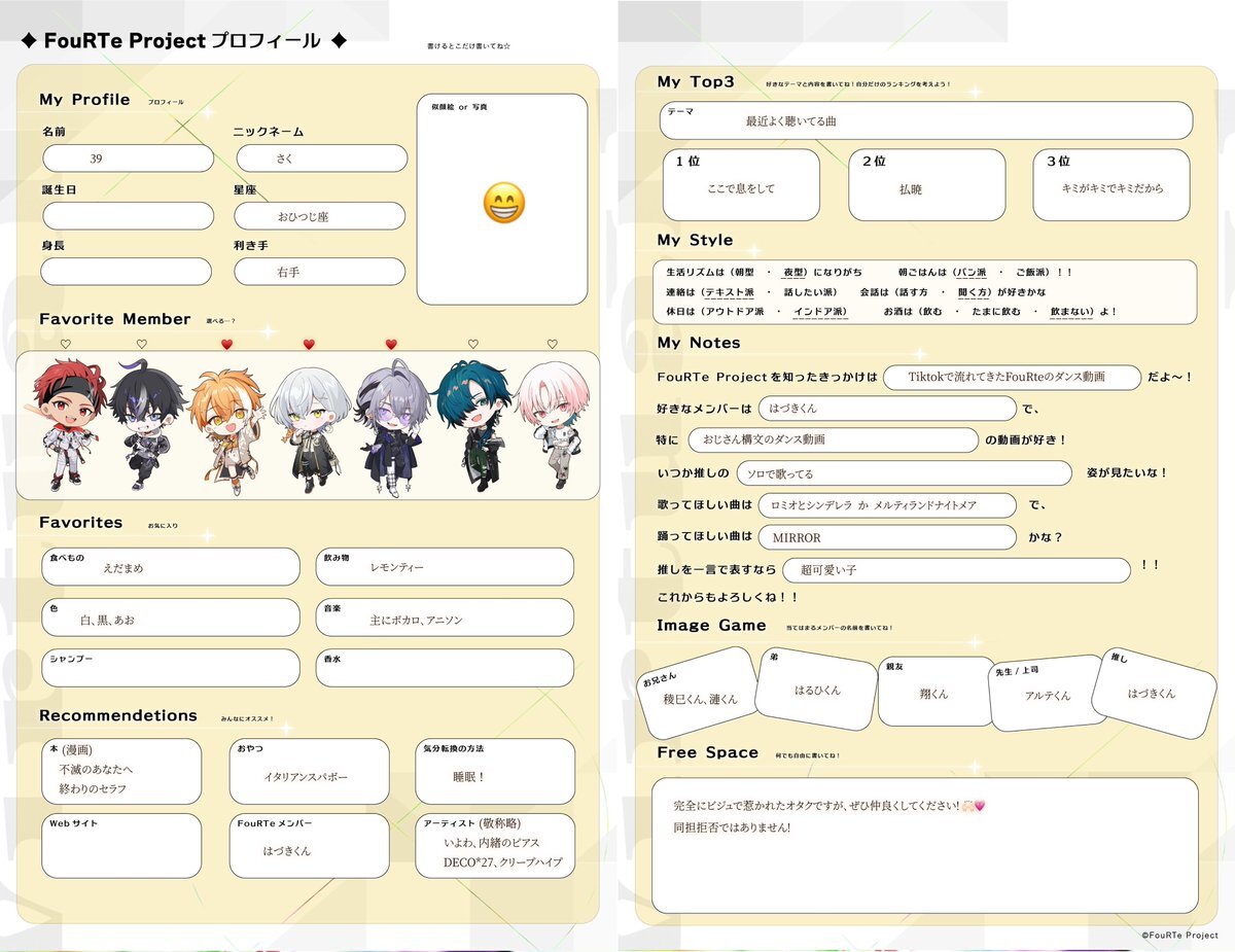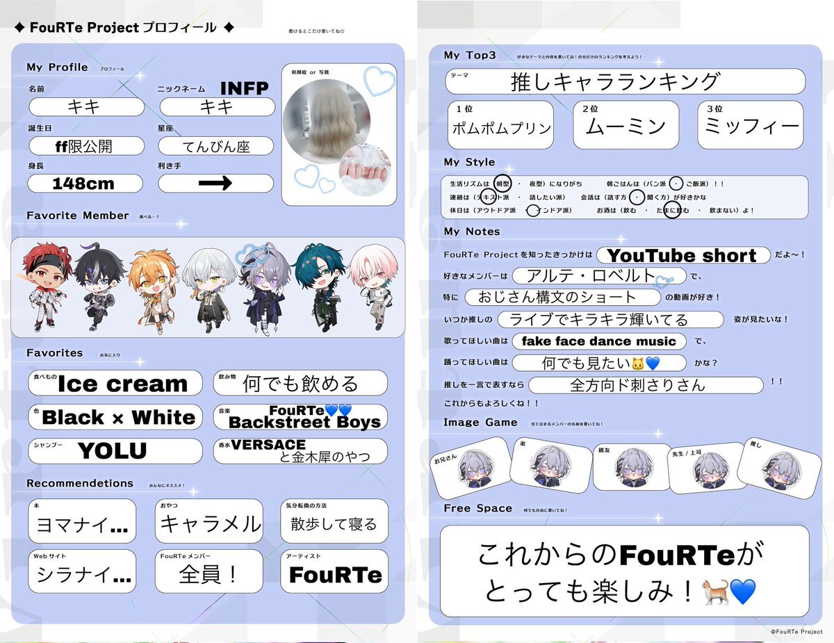 プロフィール完成 ✌︎ˊ꒳ˋ✌︎  元ツイで反応してください💕 (間違っているところを直しました💦) #FouRTe #FouRTe好きな人と繋がりたい #FouRte好きさんと繋がりたい pic.x.com/wHkQ97NCk6