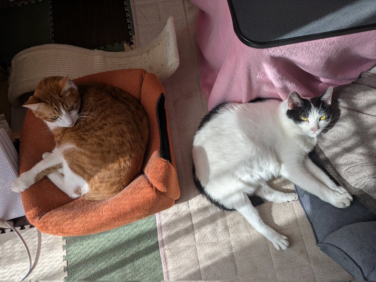 今日は白菜植えたよ😁ξ 謎な実(かぼちゃっぽいもの)を収穫して、夜解体する予定笑 今日はポカポカ日和なので猫たち日向ぼっこしてます🐱😺 #ベランダ菜園 #GLAY野菜部 #GLAY猫部 pic.x.com/hVMQBwTmrq